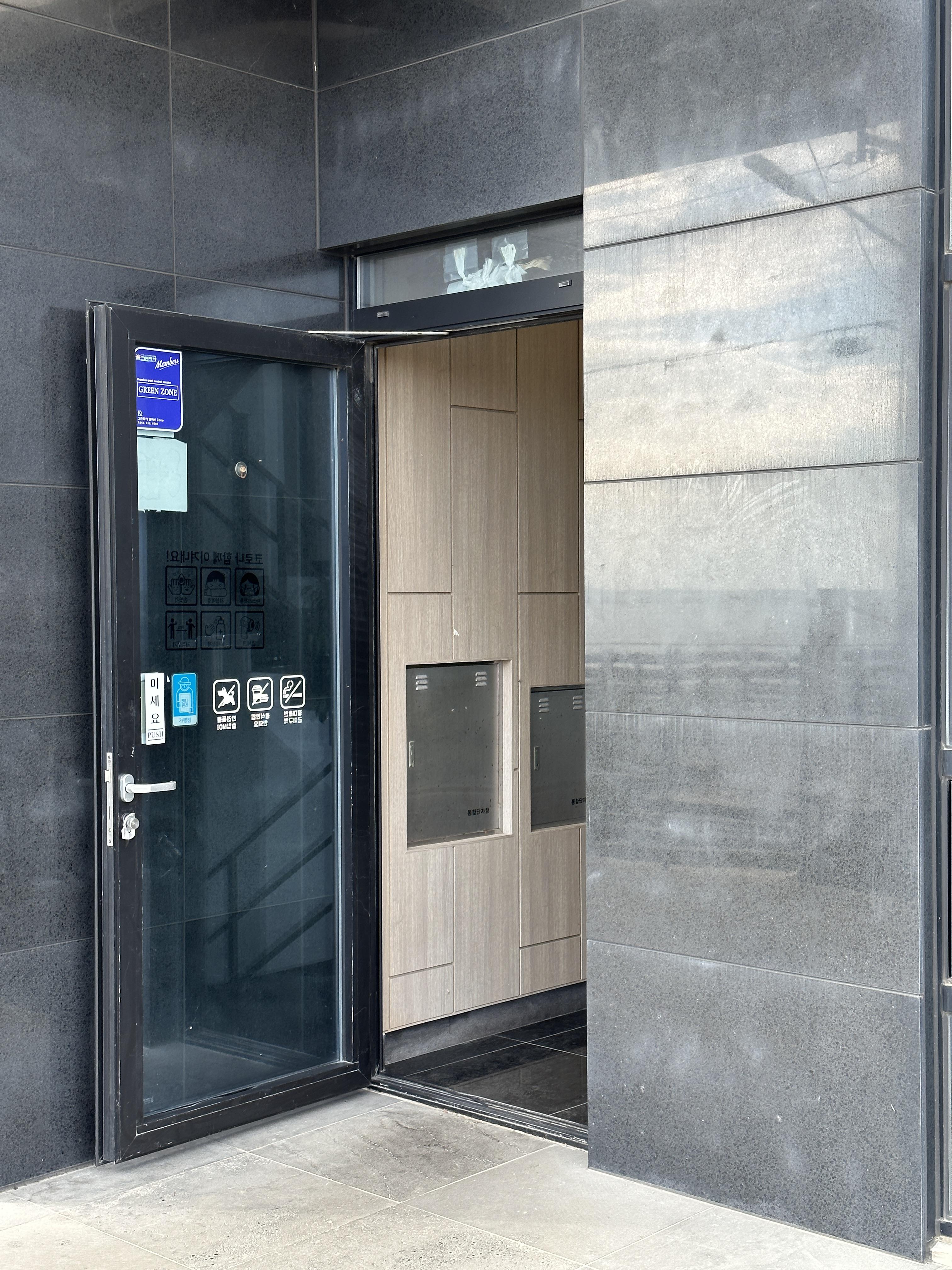 식장에 들어갈 땐 몰랐는데.. 식당 문을 열어두고 바로 계단 아래 쓰레기 컨테이너를 보고
