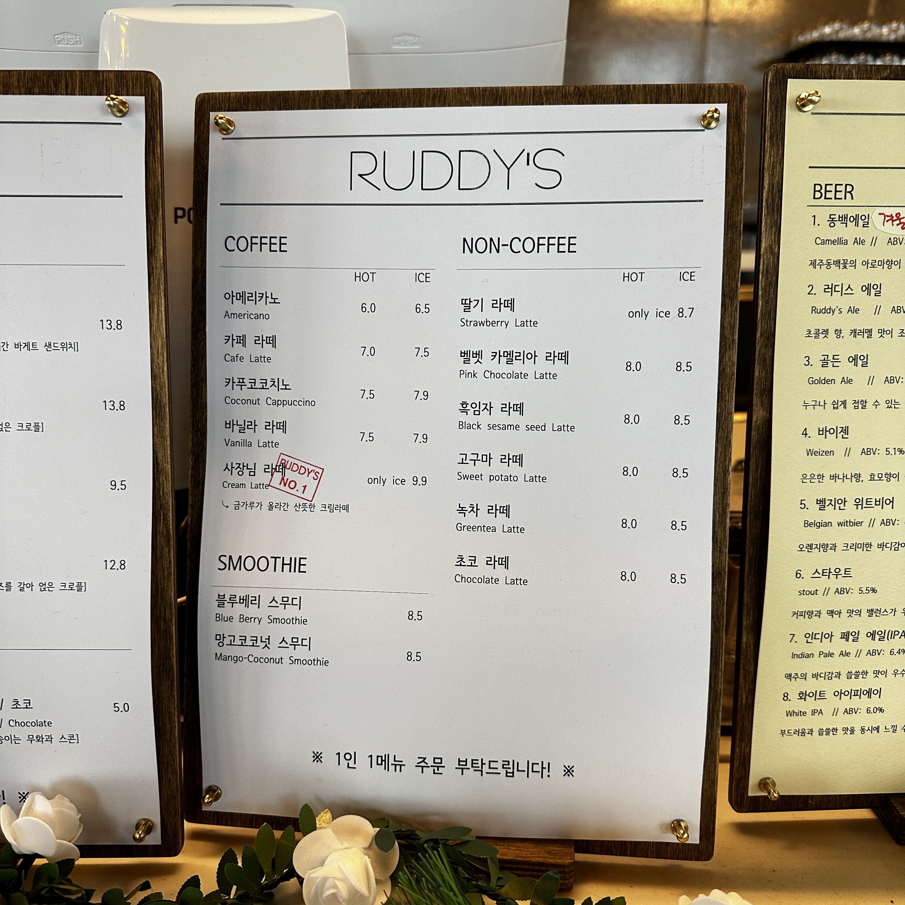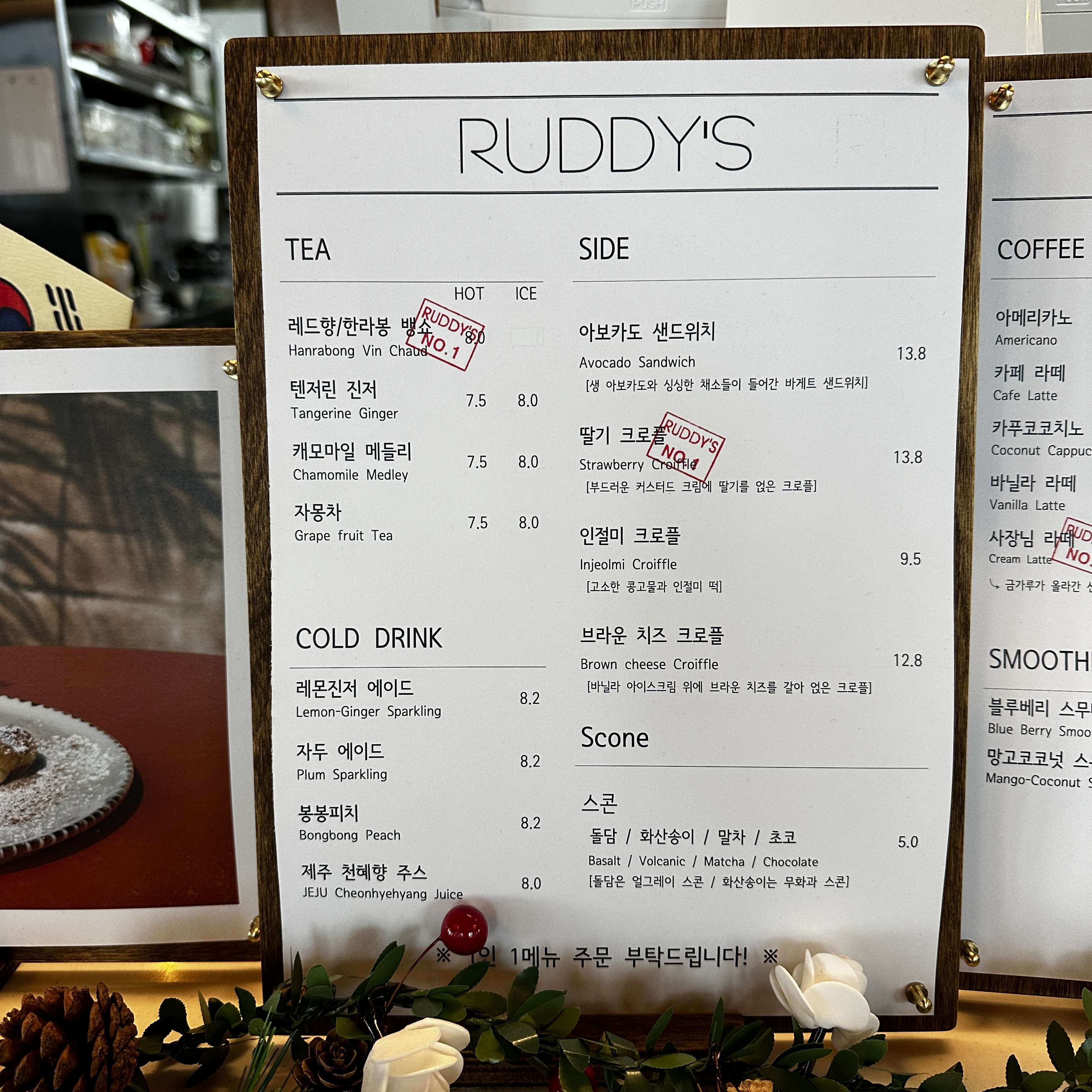 카페 메뉴를 살포시 둘러 봤습니다.