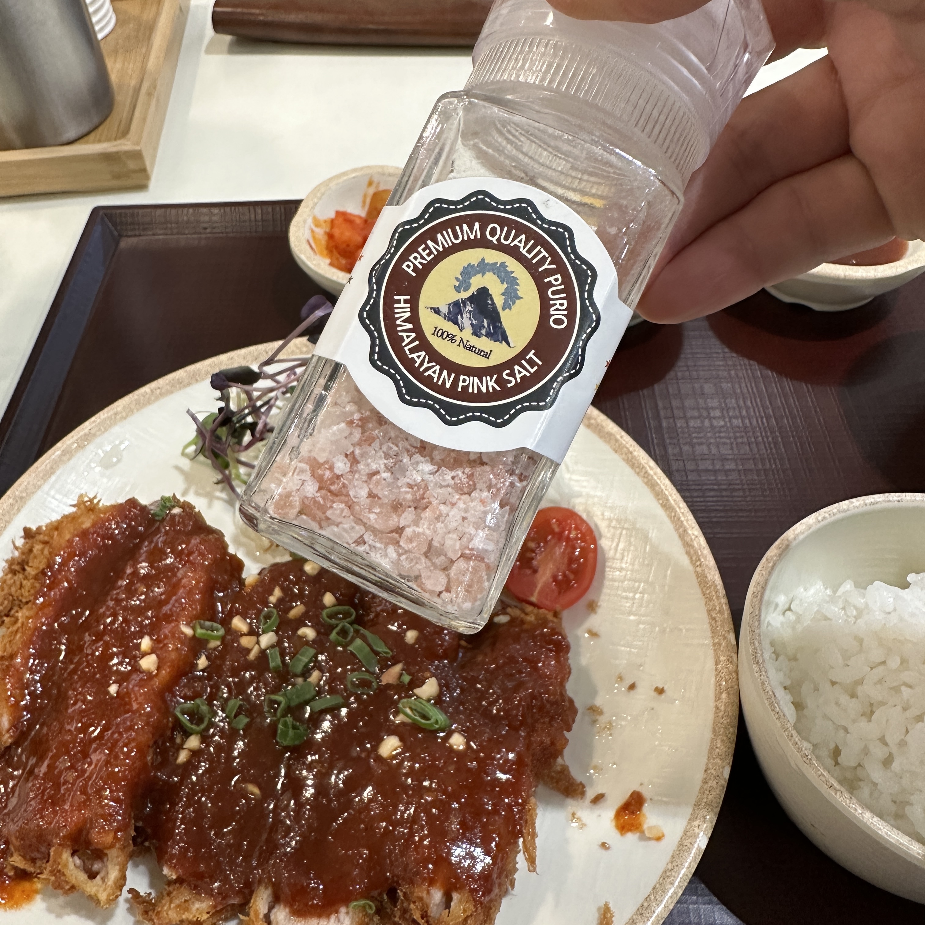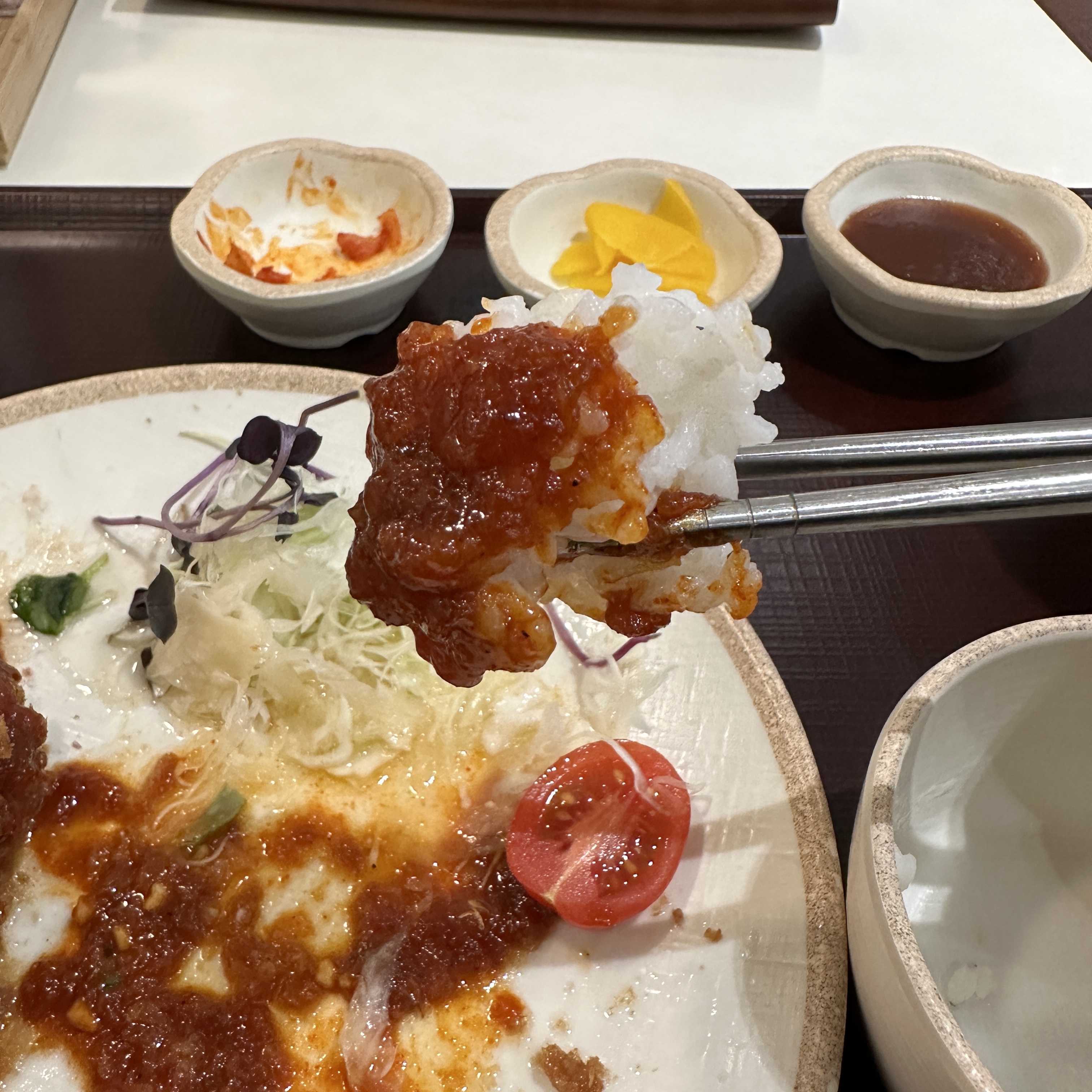 그런데 흰쌀밥에 매운 소스를 먹는데
