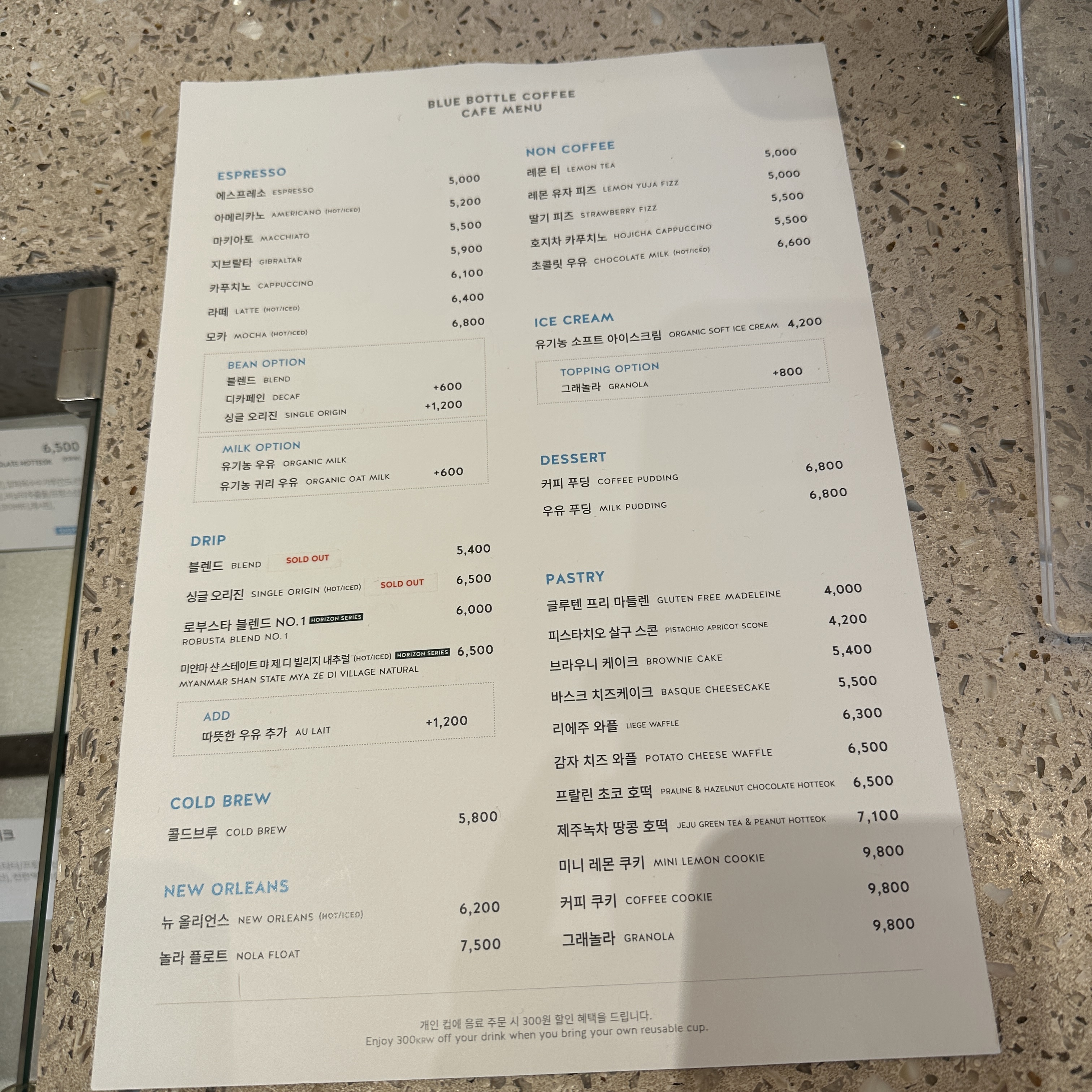 가격과 맛이 만족스러운 블루보틀입니다.