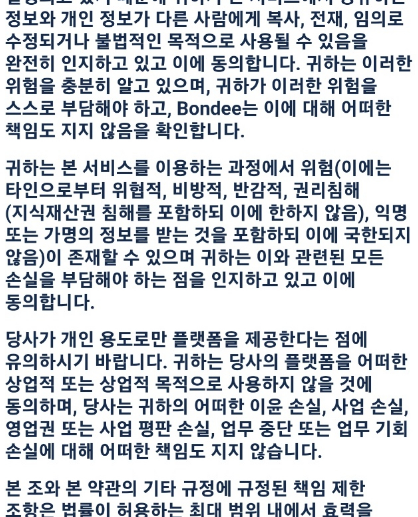 본디 계정 약관중 이런 내용은 있습니다.
