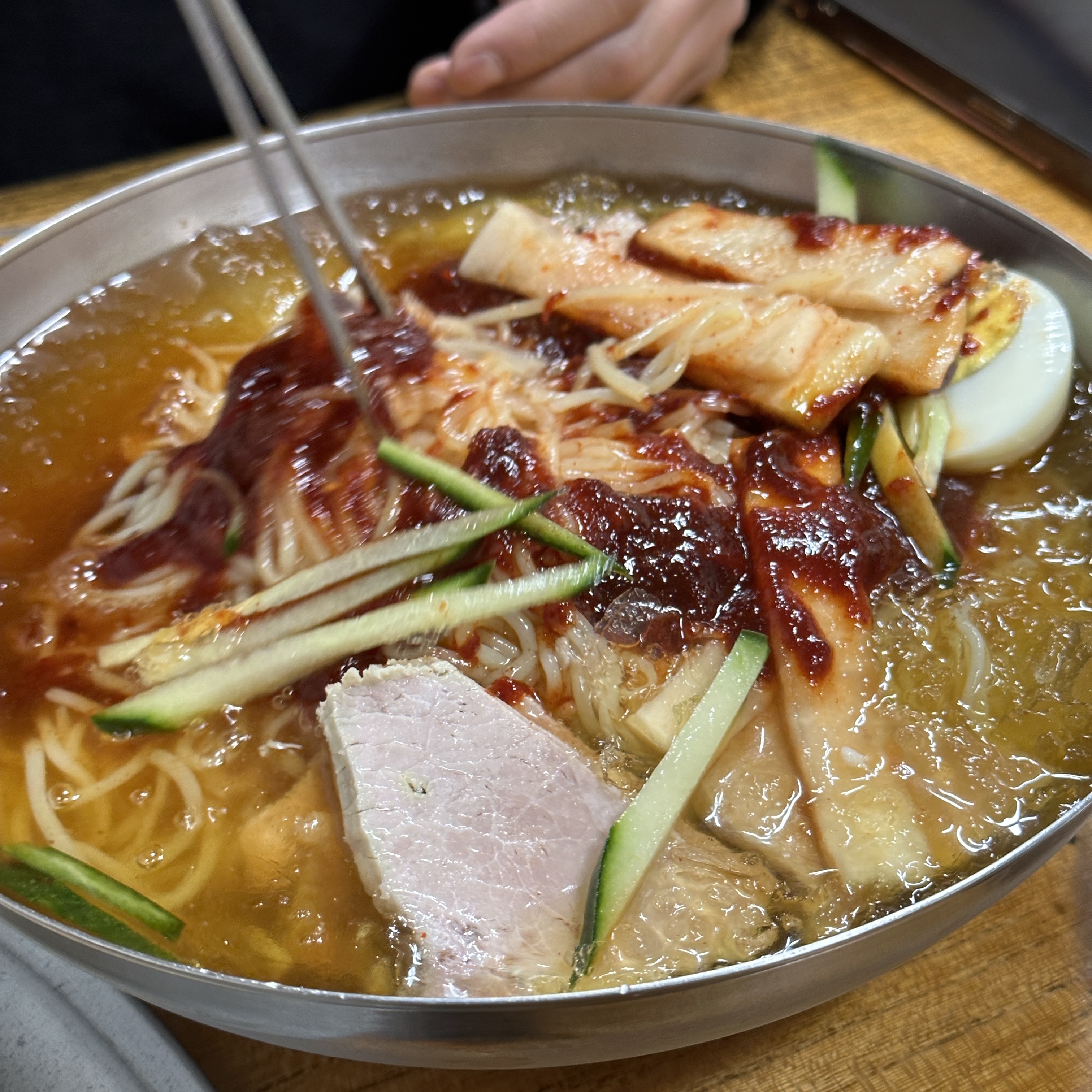 밀면에 고기가 많이 많이 들어가 있었고,