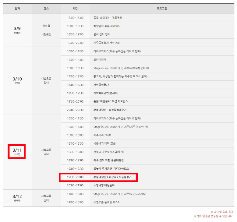 아참~ 들불축제 일정을 이야기 드리려고 했죠?