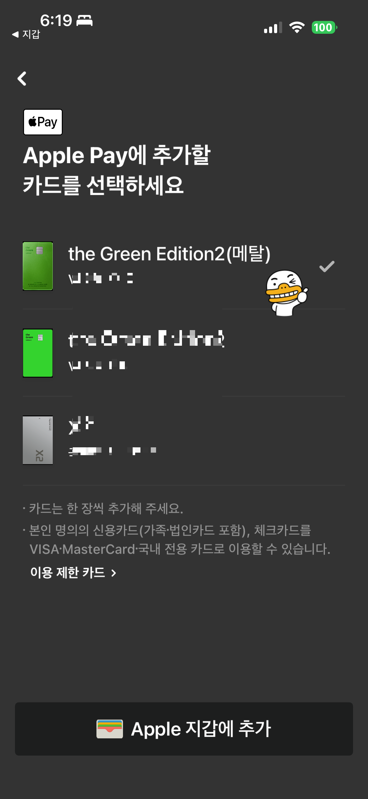 오늘은 애플페이를 처음으로 등록했어요.