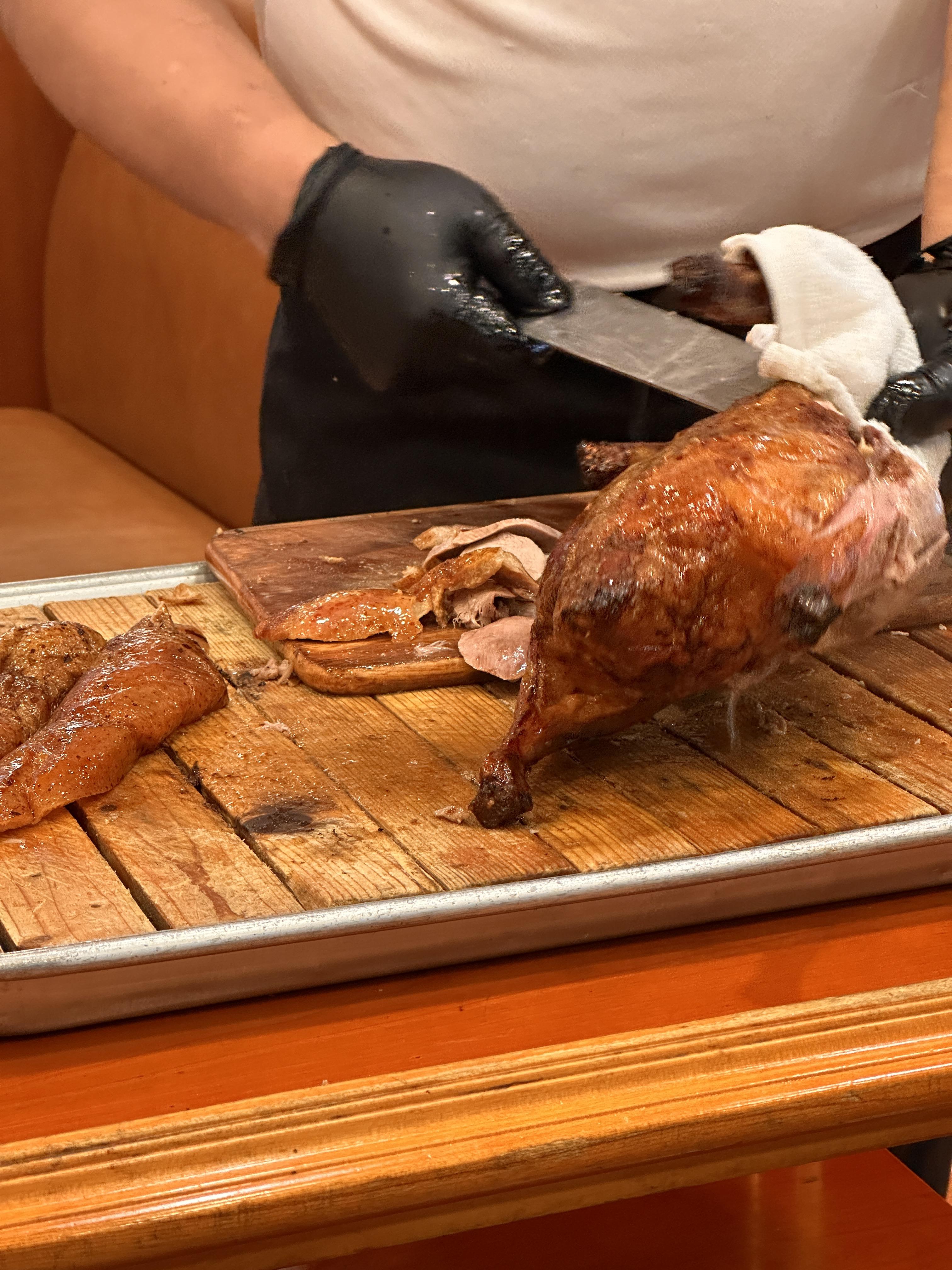 저기 오리고기 껍질이 최고인 거 아시죠?