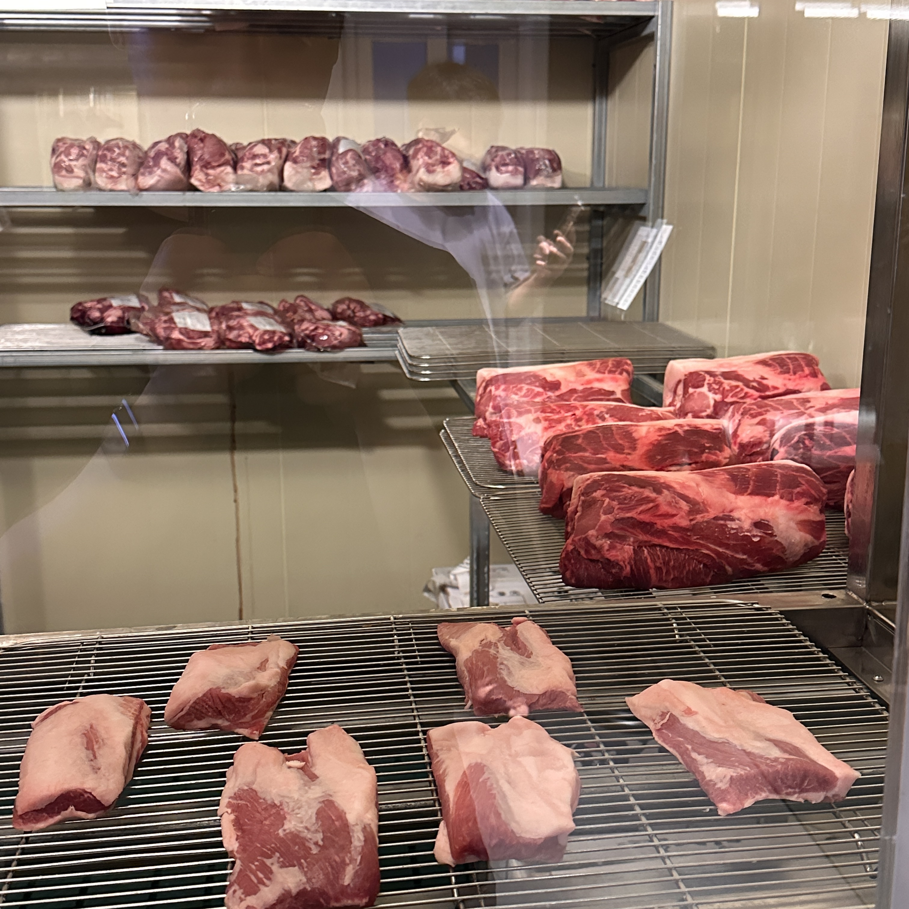 대기공간에 숙성고기를 구경할 수 있었어요.