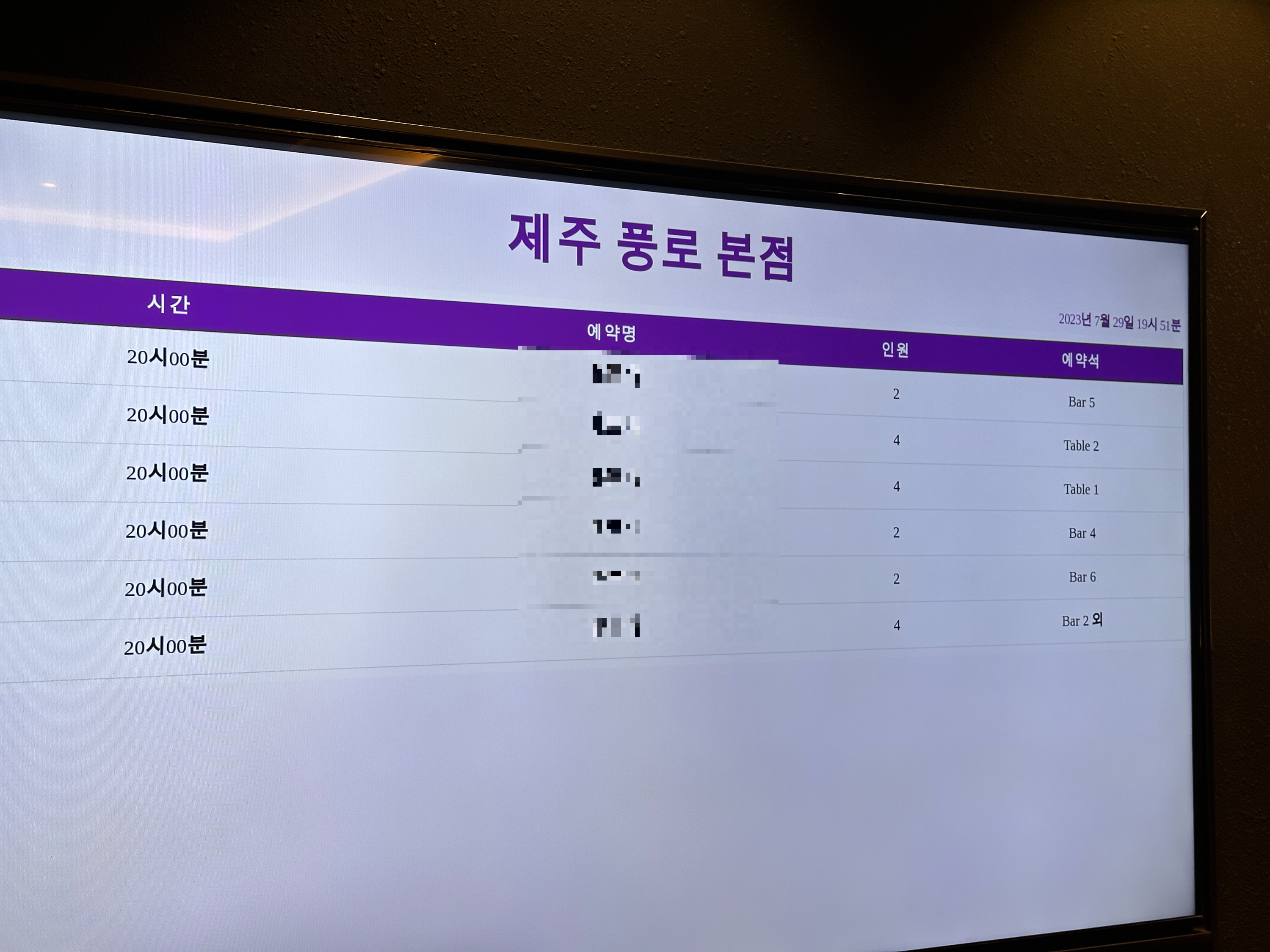 모니터에 이렇게 해당시간 예약된 사람들의 이름이 뜹니다.