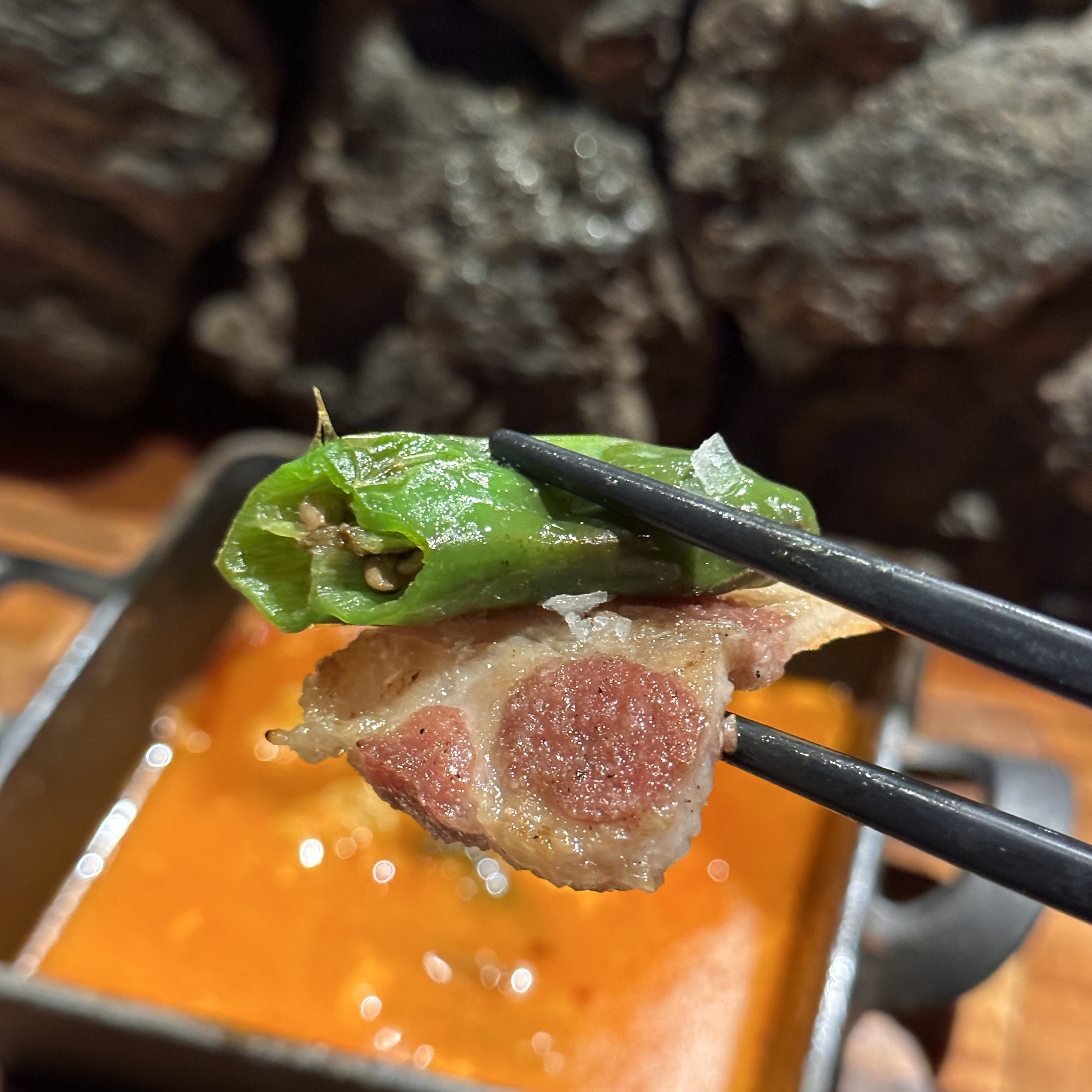 꽈리고추의 살짝 매콤함이 고기와 너무 잘 어울렸어요.