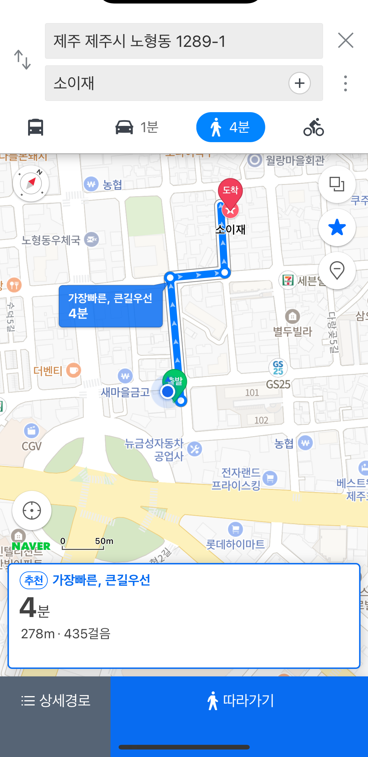 노형 제2주차장에서 소이재 까지는 4분이 나오네요~