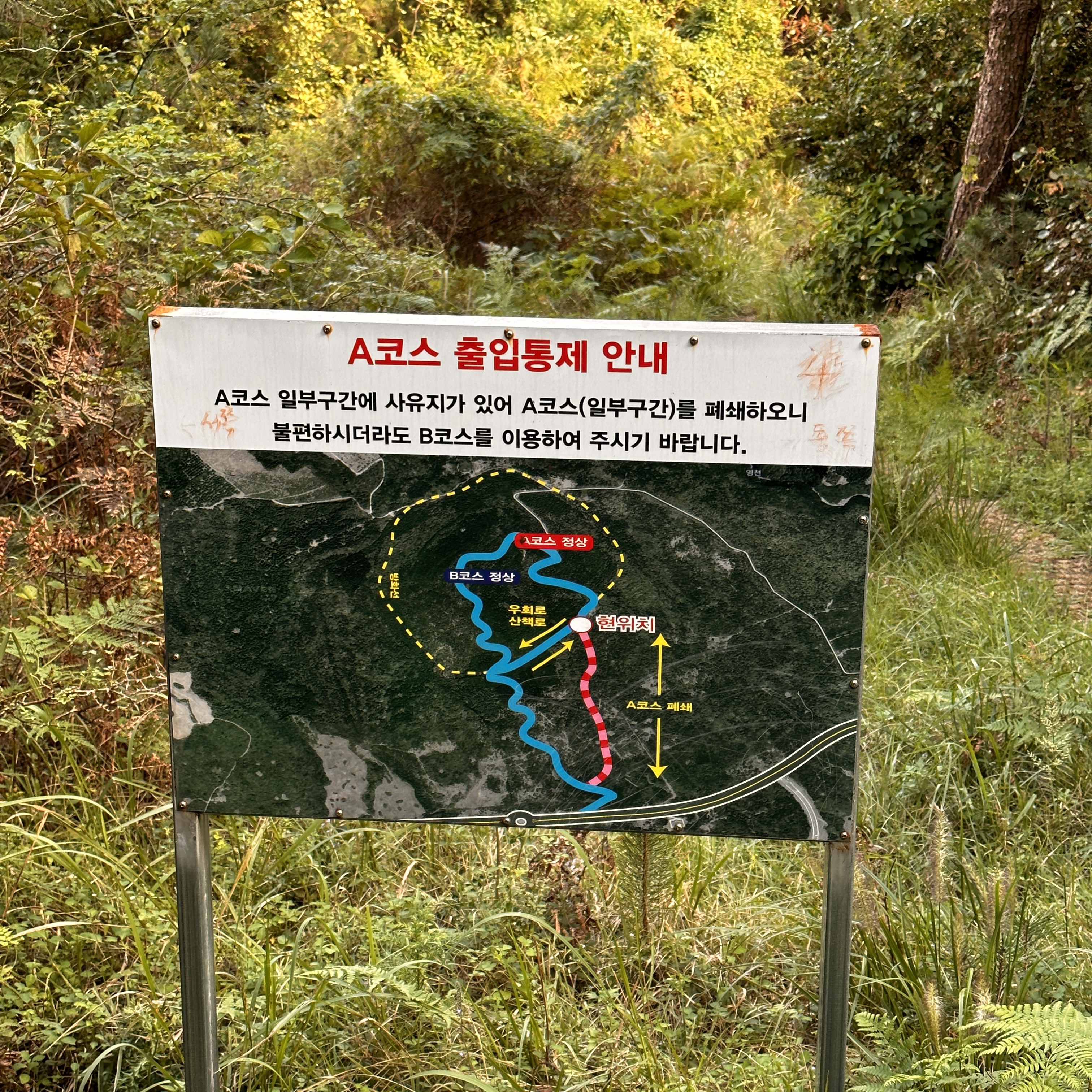 A코스의 일부는 탐방금지로 되어 있어서