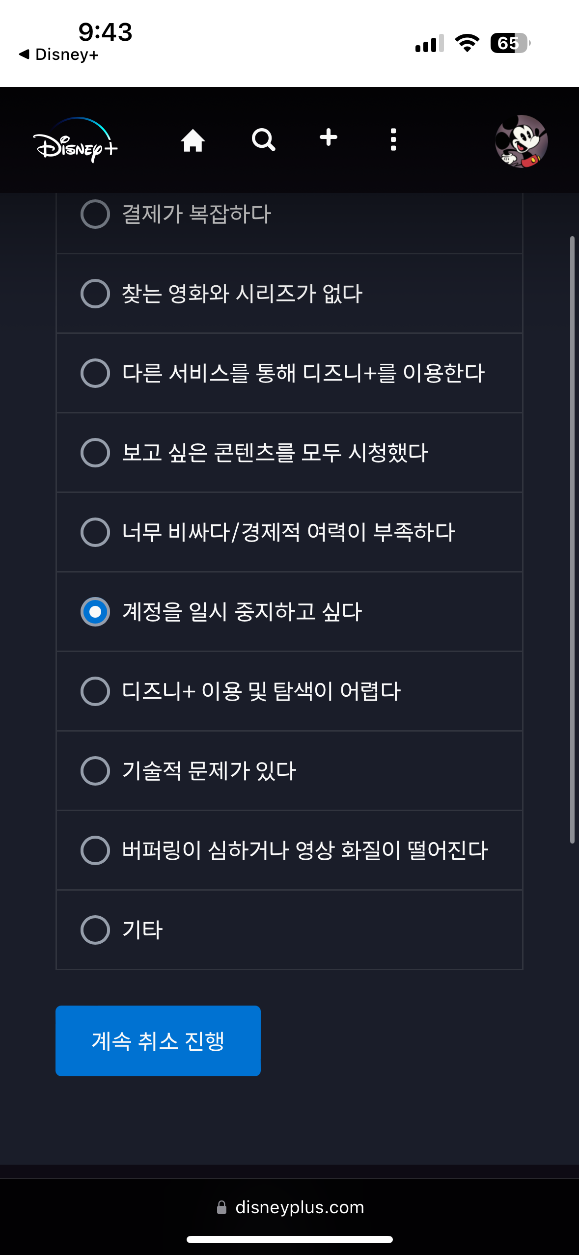 이제 디즈니 플러스 구독취소 고지가 보인다. ㅎㅎ