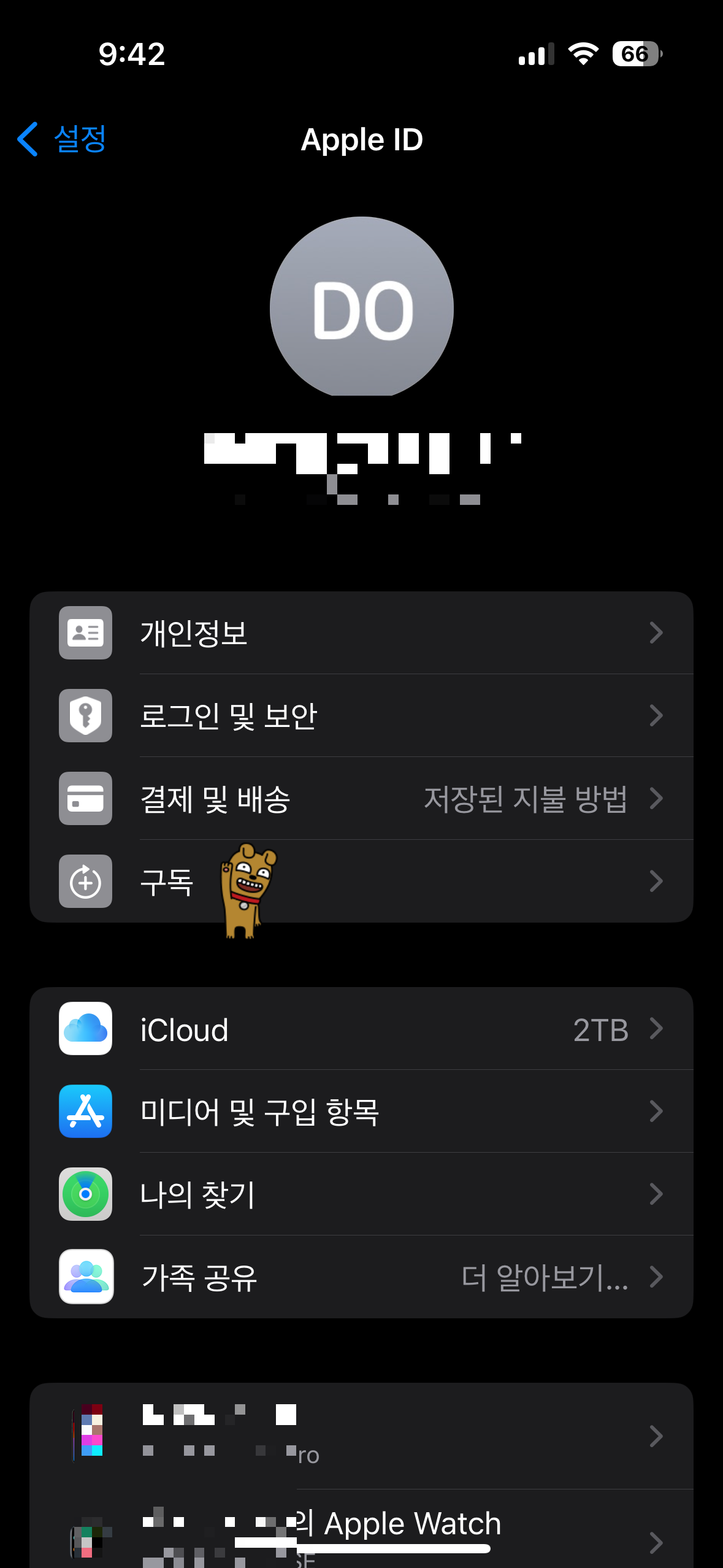 아래로 내리면 계정탈퇴 항목이 보인다.
