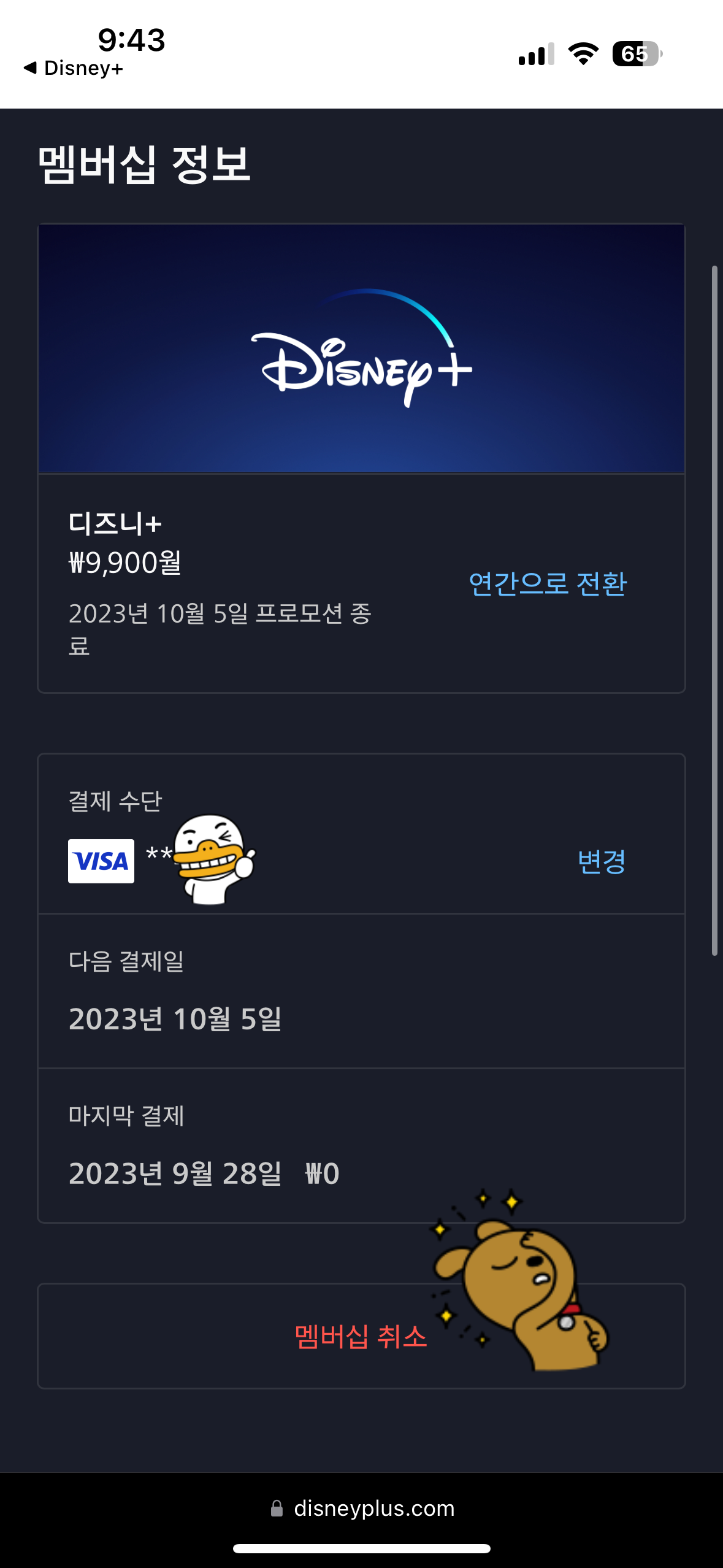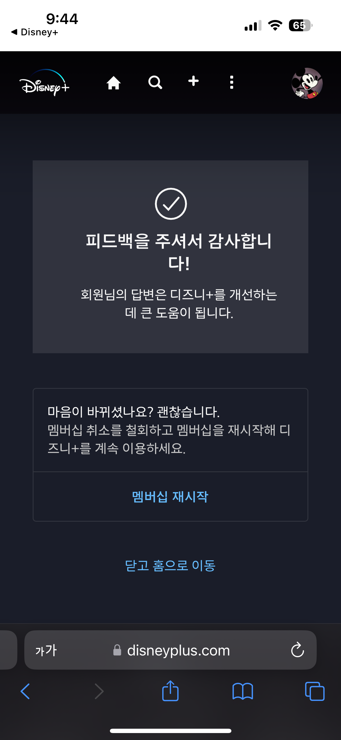 이렇게 디즈니 플러스 구독 취소가 완료 되었다!