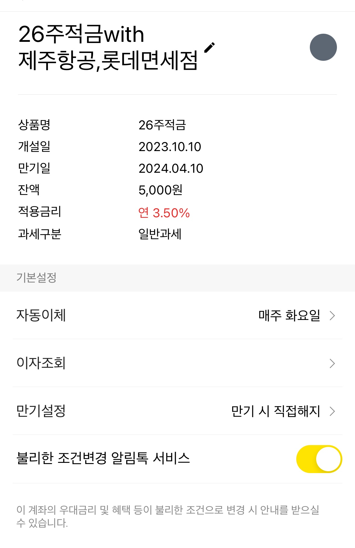 제주항공이랑 함께하는 26주 적금이 있어 바로 가입했습니다.