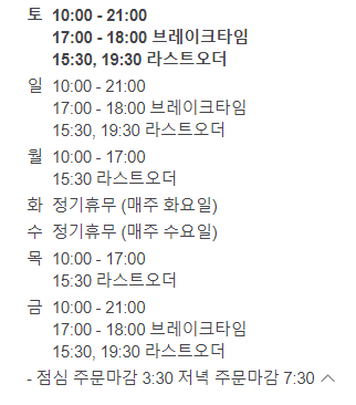운영시간 : 화, 수 쉼