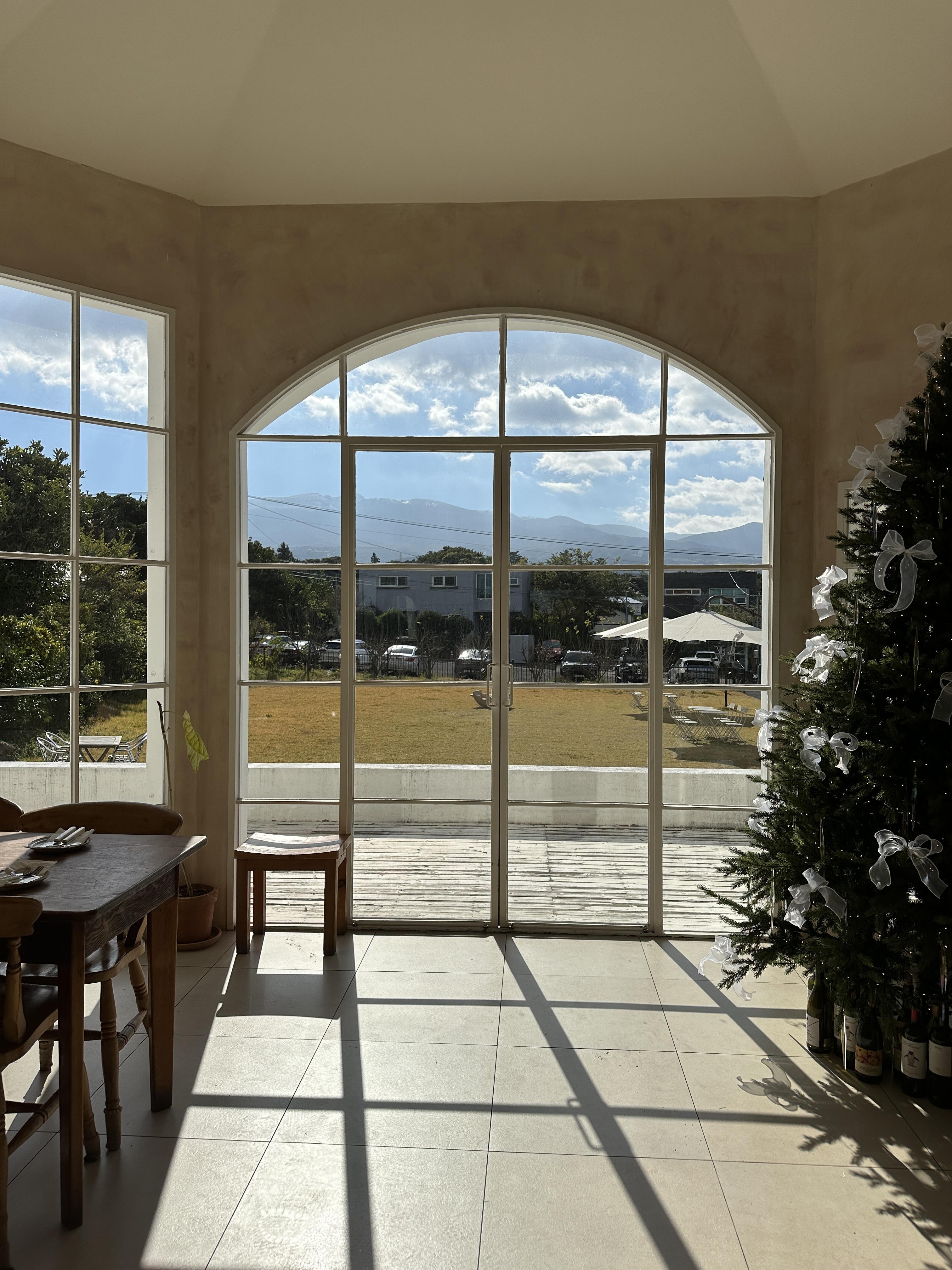 마당에서 보이는 한라산 뷰는 막힘없이 최고였습니다.