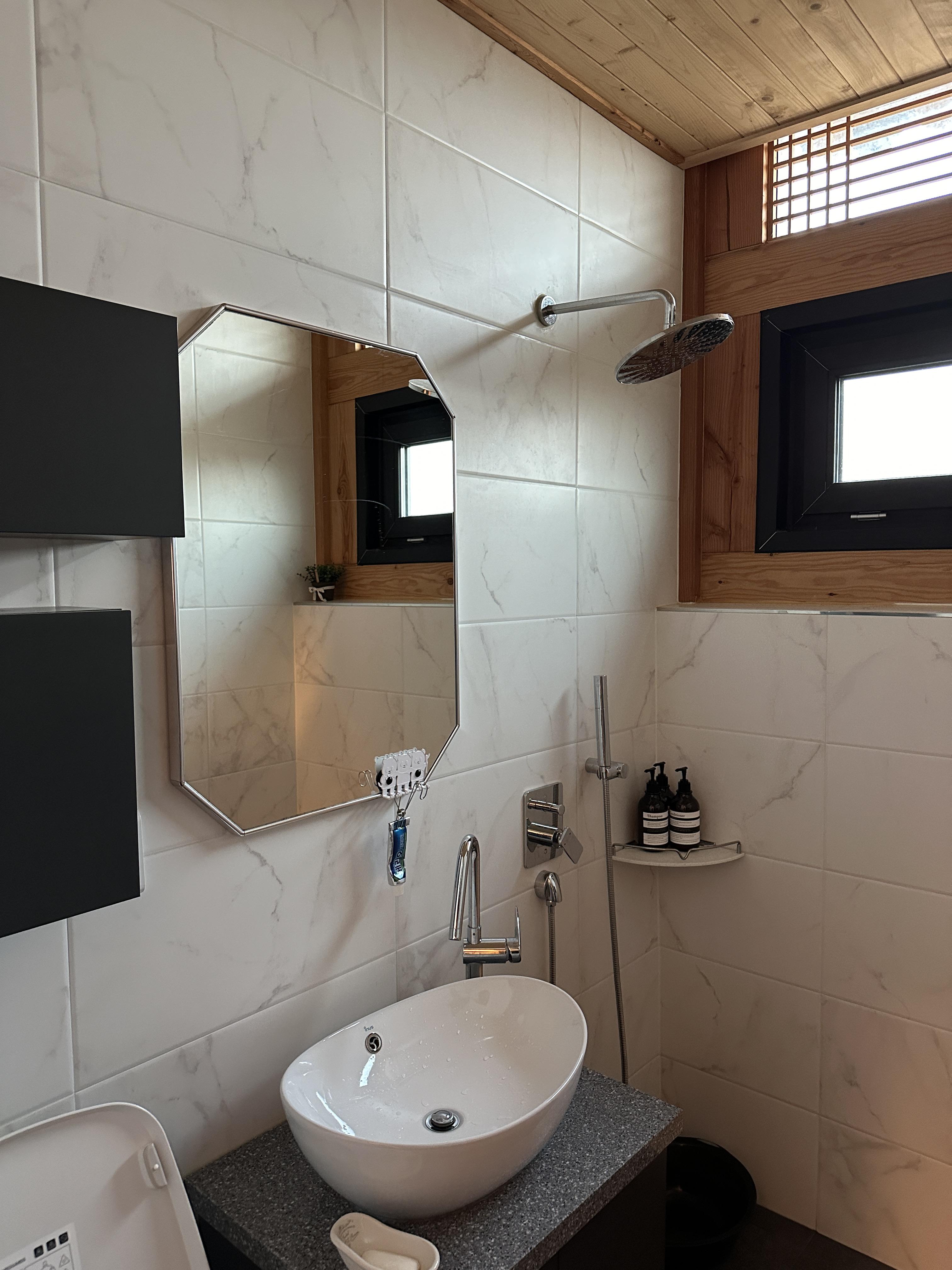 화장실은 깨끗 깔끔하고 널찍했습니다.