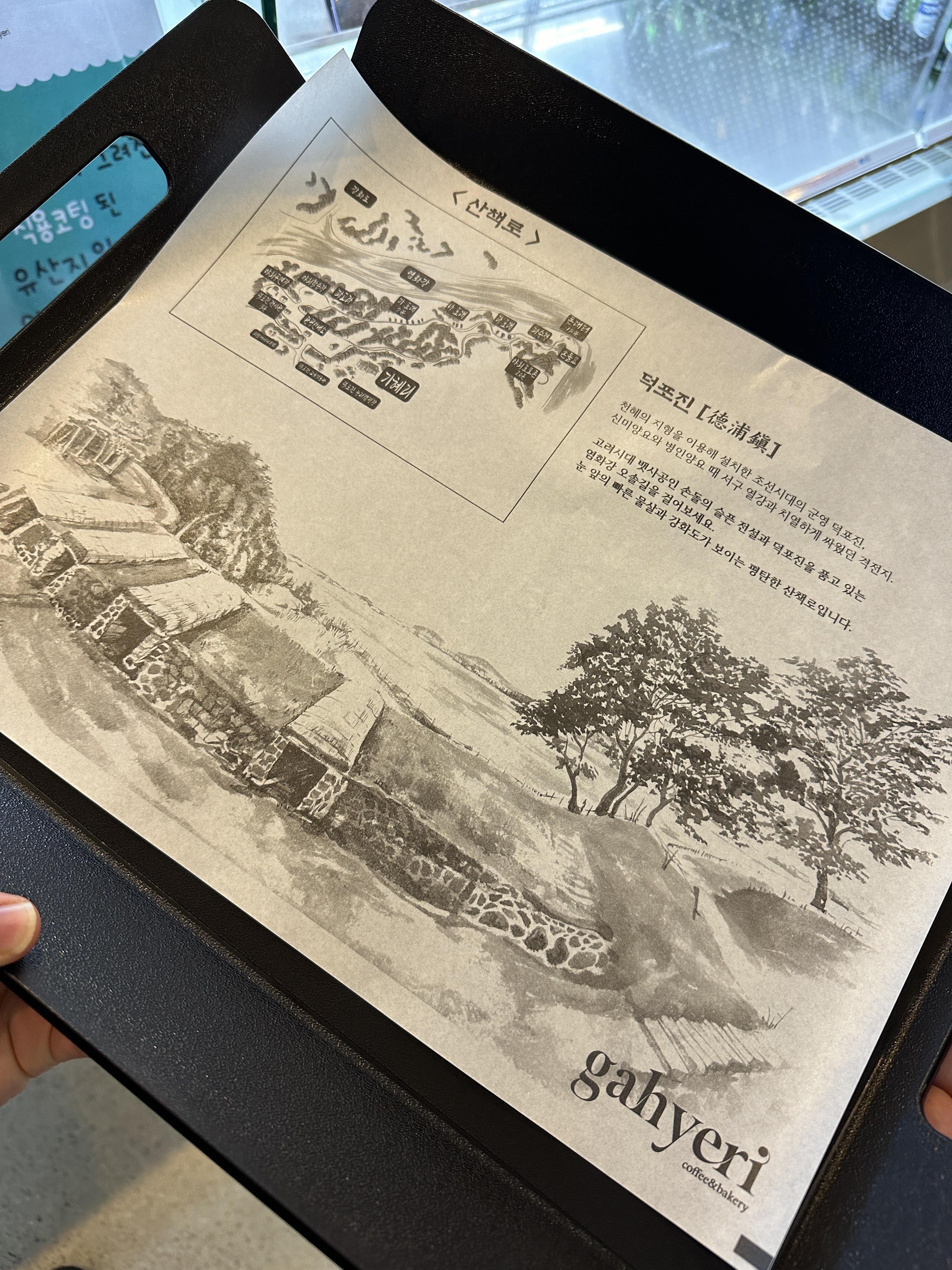 가혜리 지도를 하나 받고, 산책로를 보면서 빵과 커피를 마신다.