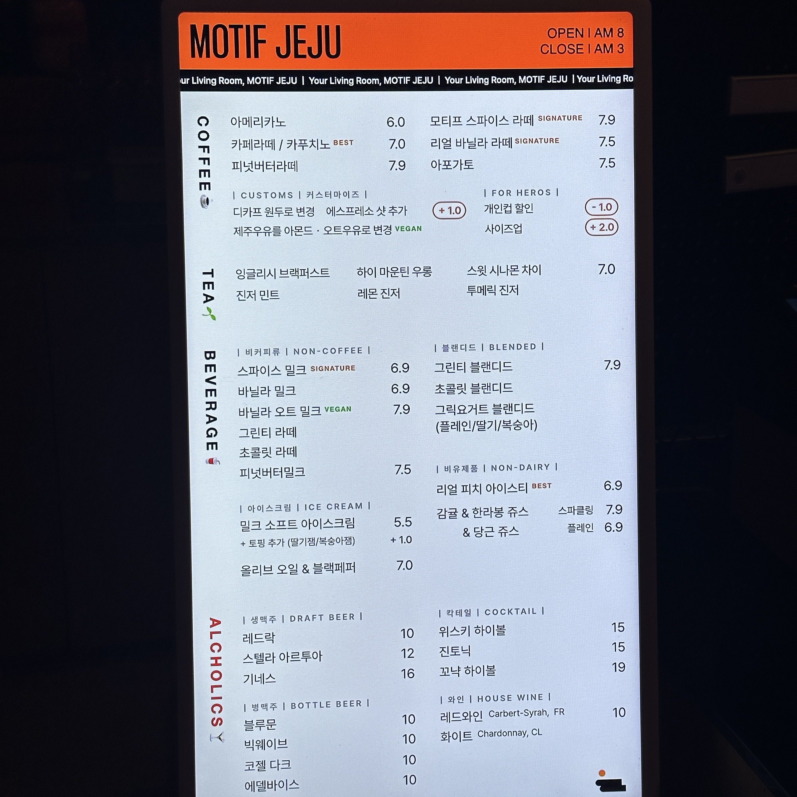 운영시간 : 오전 8시 ~ 다음날 03시 (월요일은 오후 9시까지)