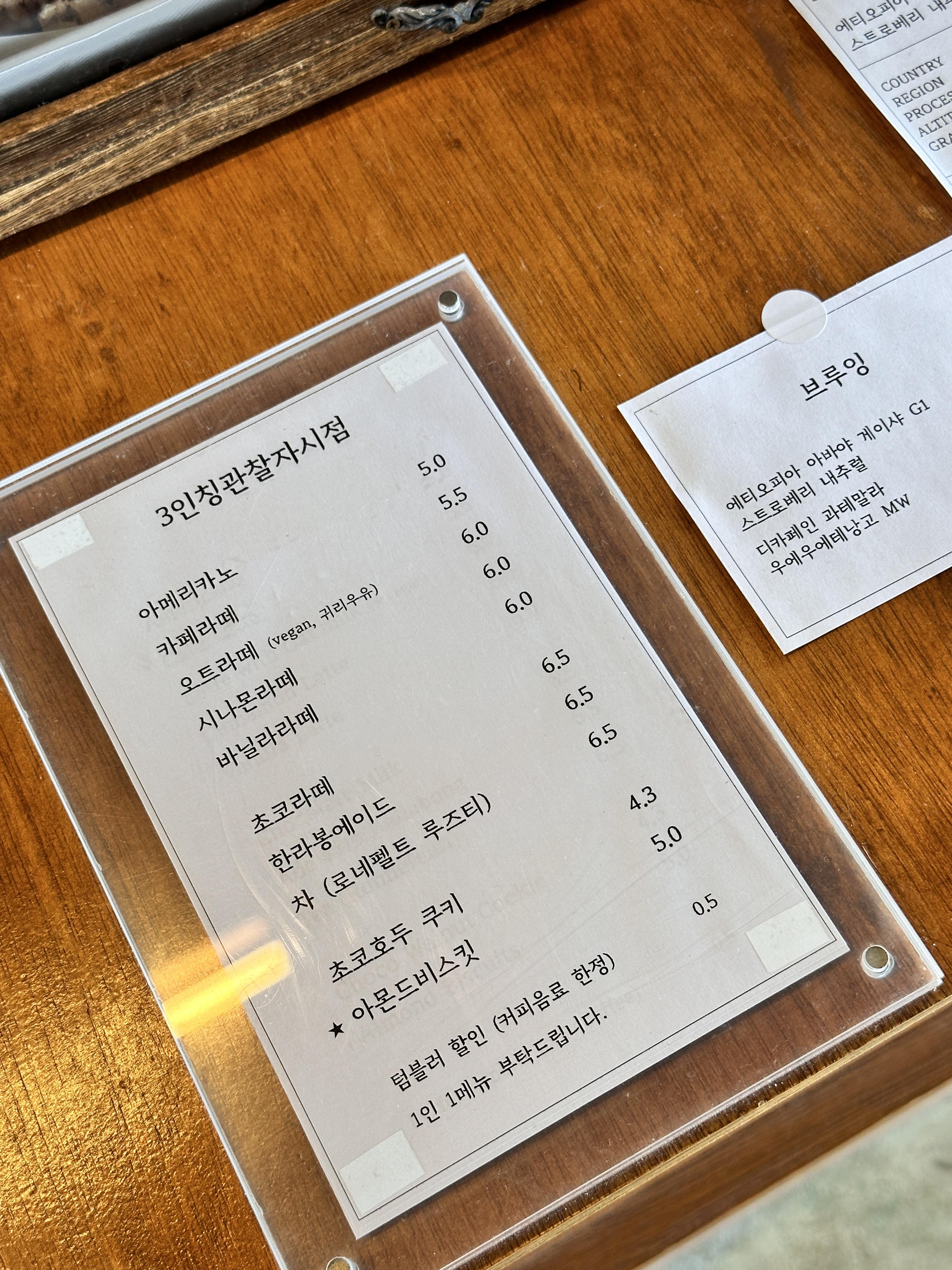 커피는 아메리카노가 5천 원~! ㅎ