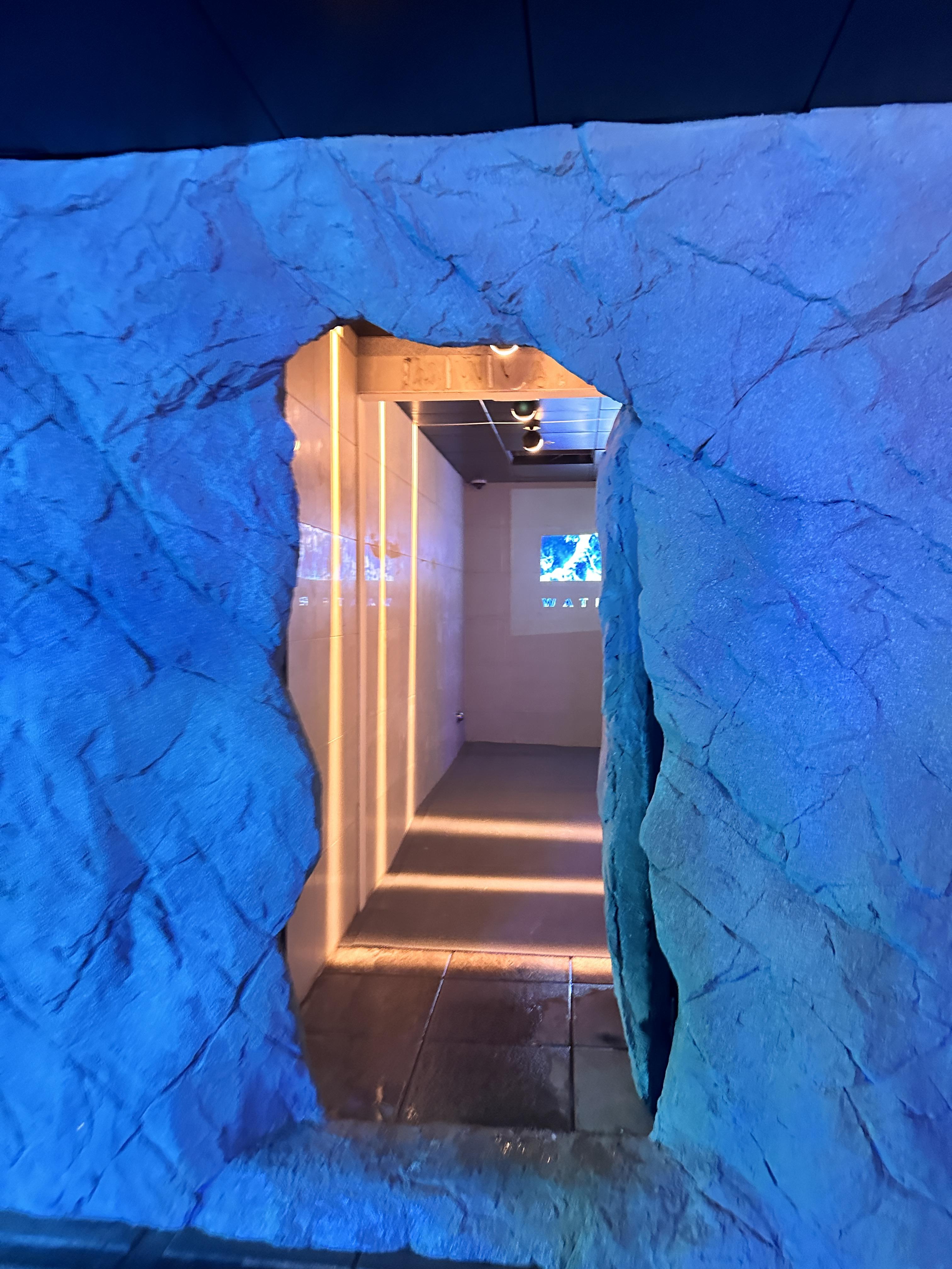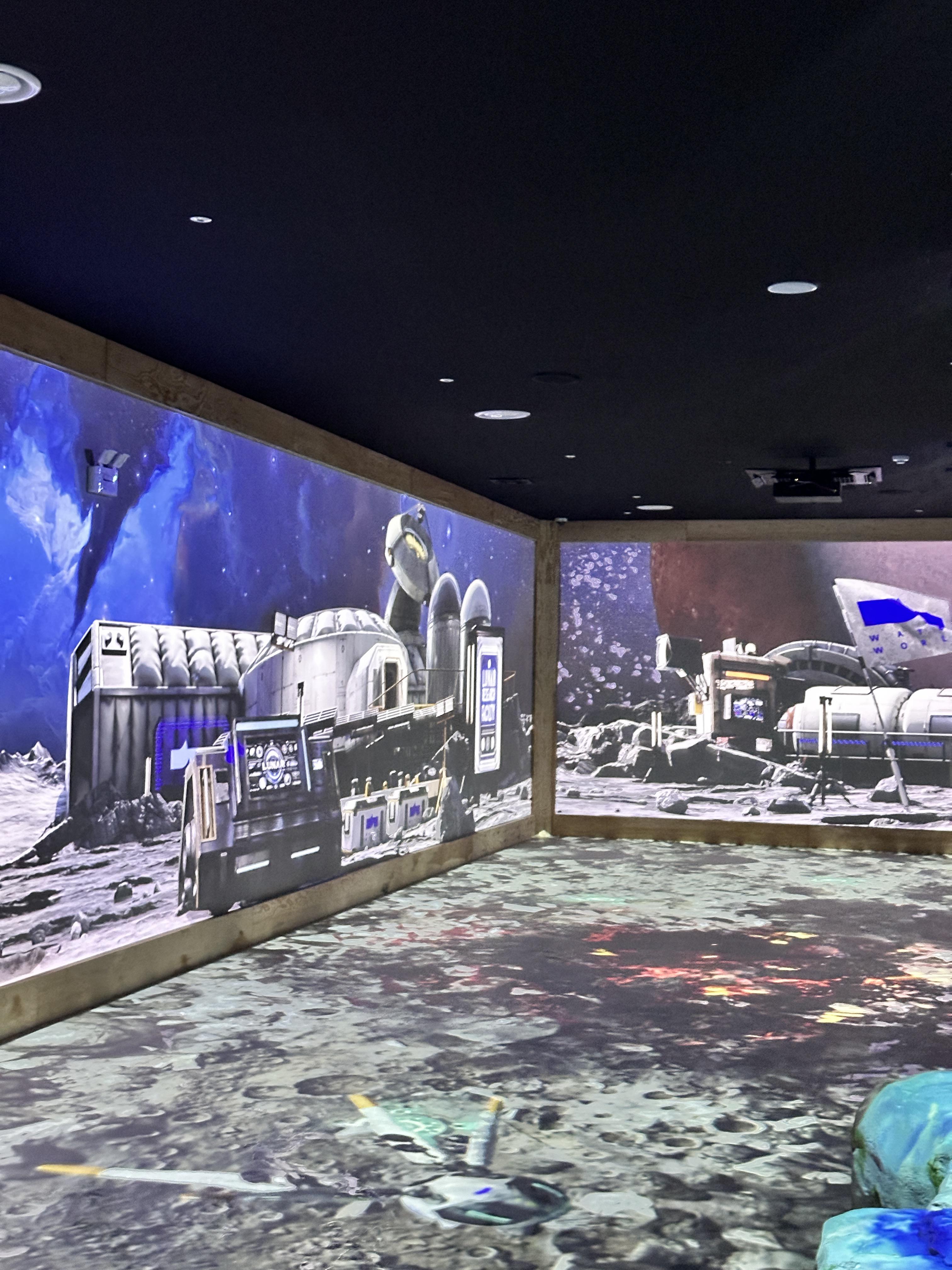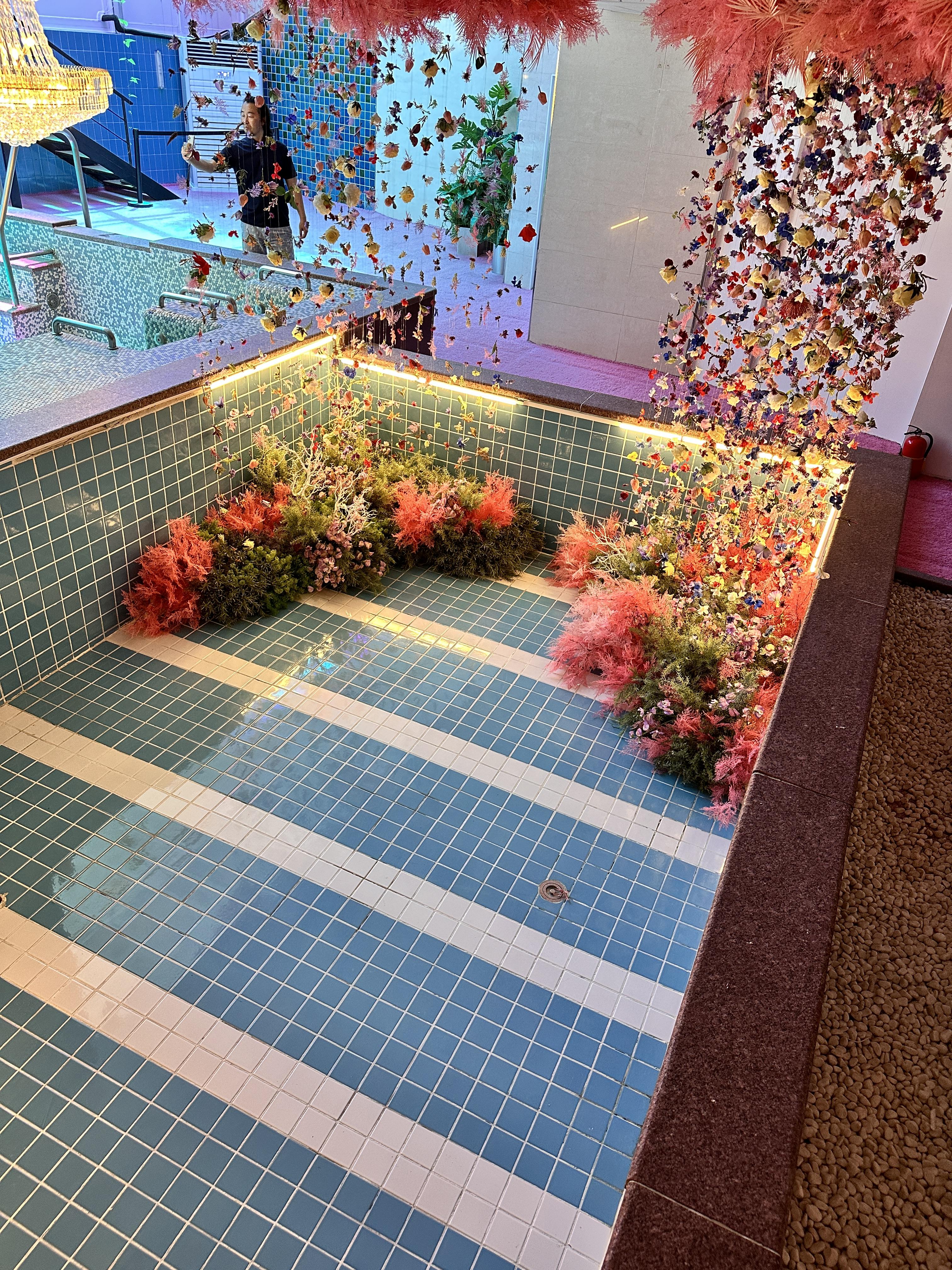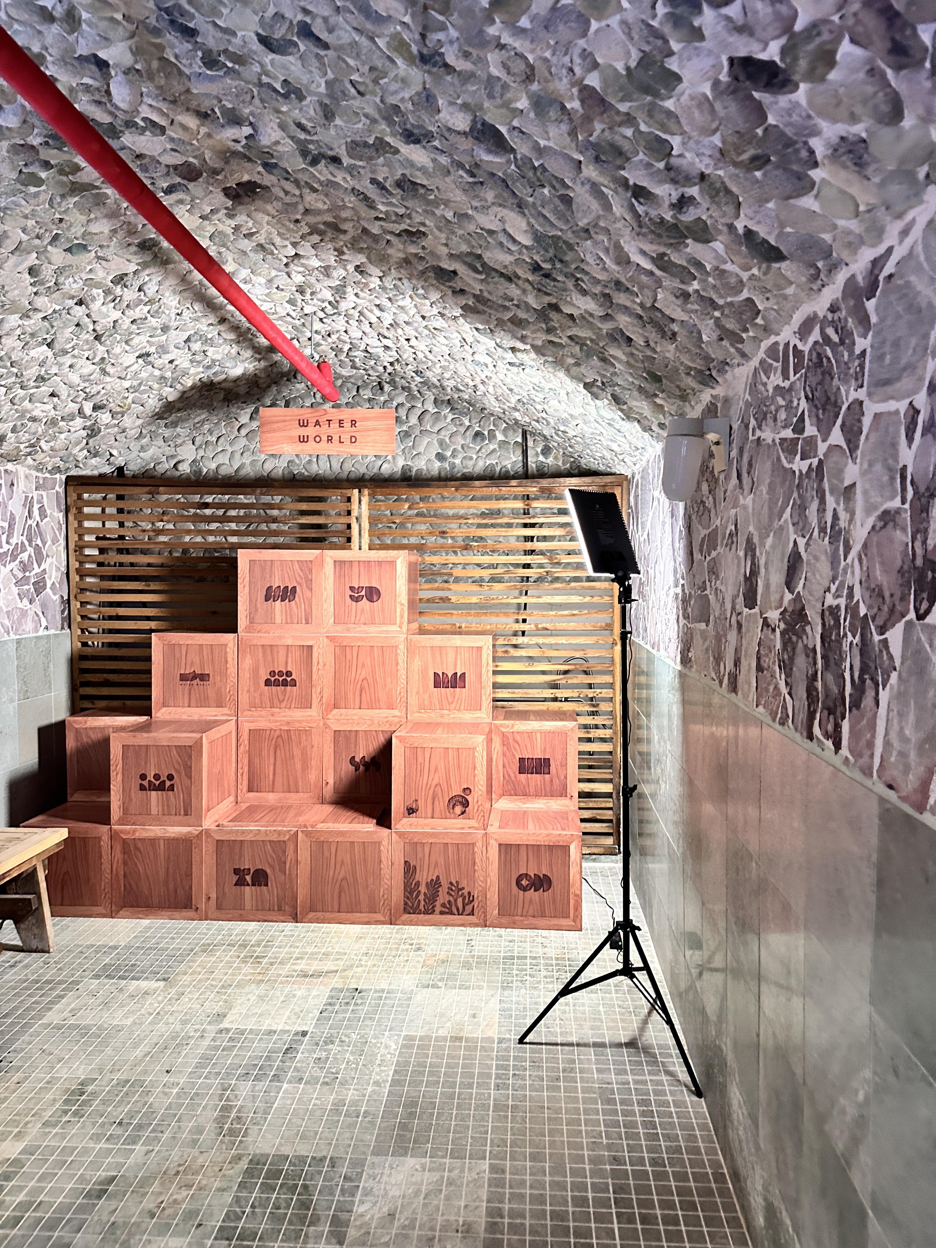 워터파크 이용 공간은 그대로 살리고, 미디어 아트 전시를 공간마다 꾸며 노은 전시관입니다.