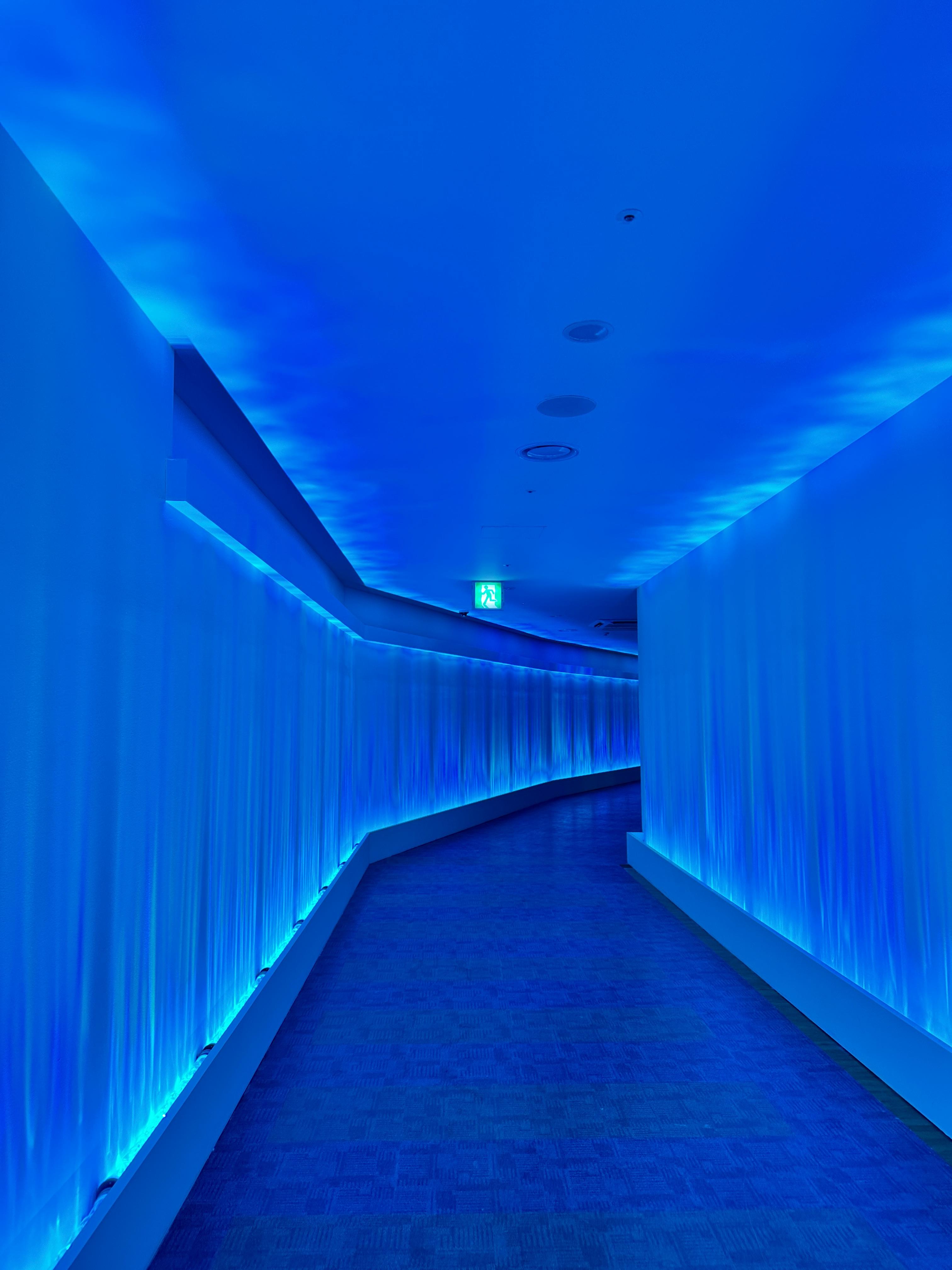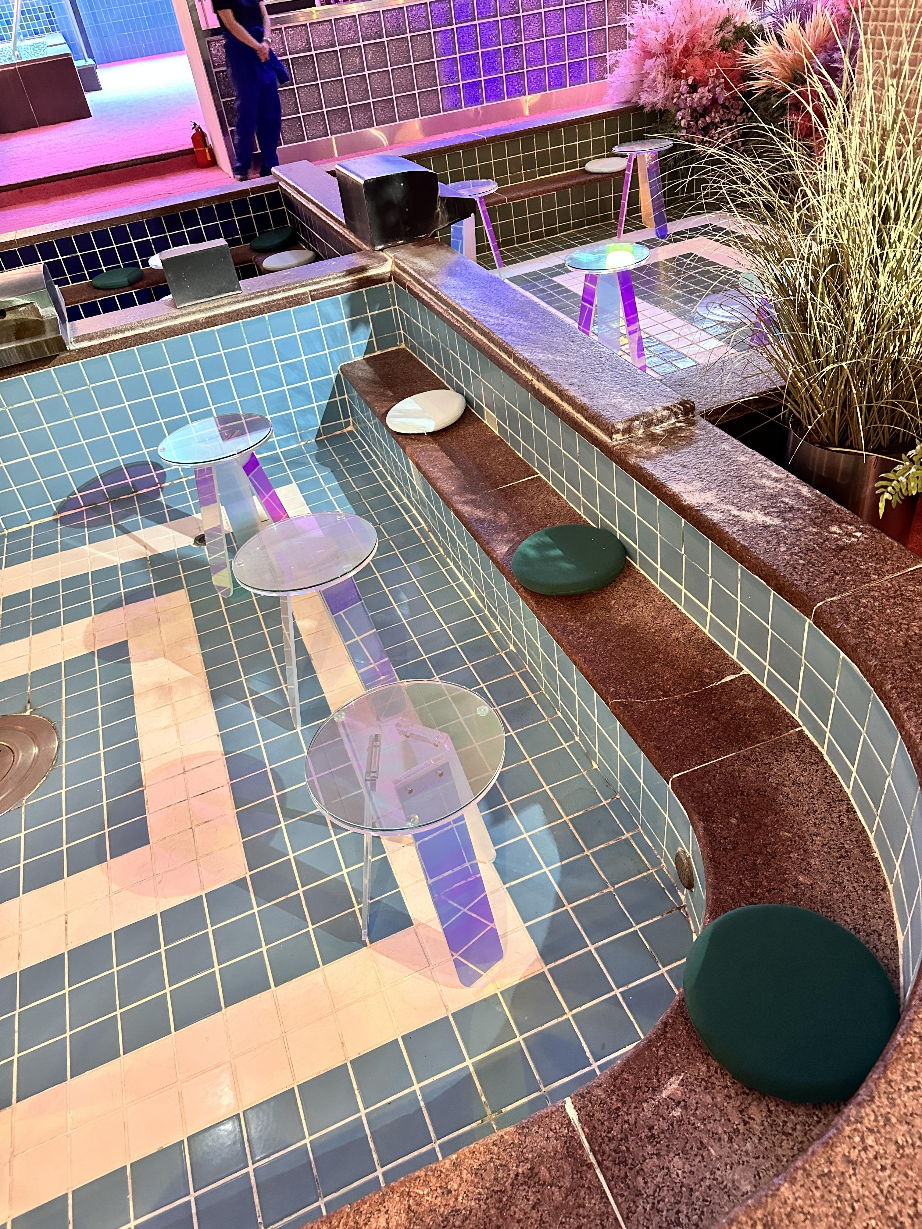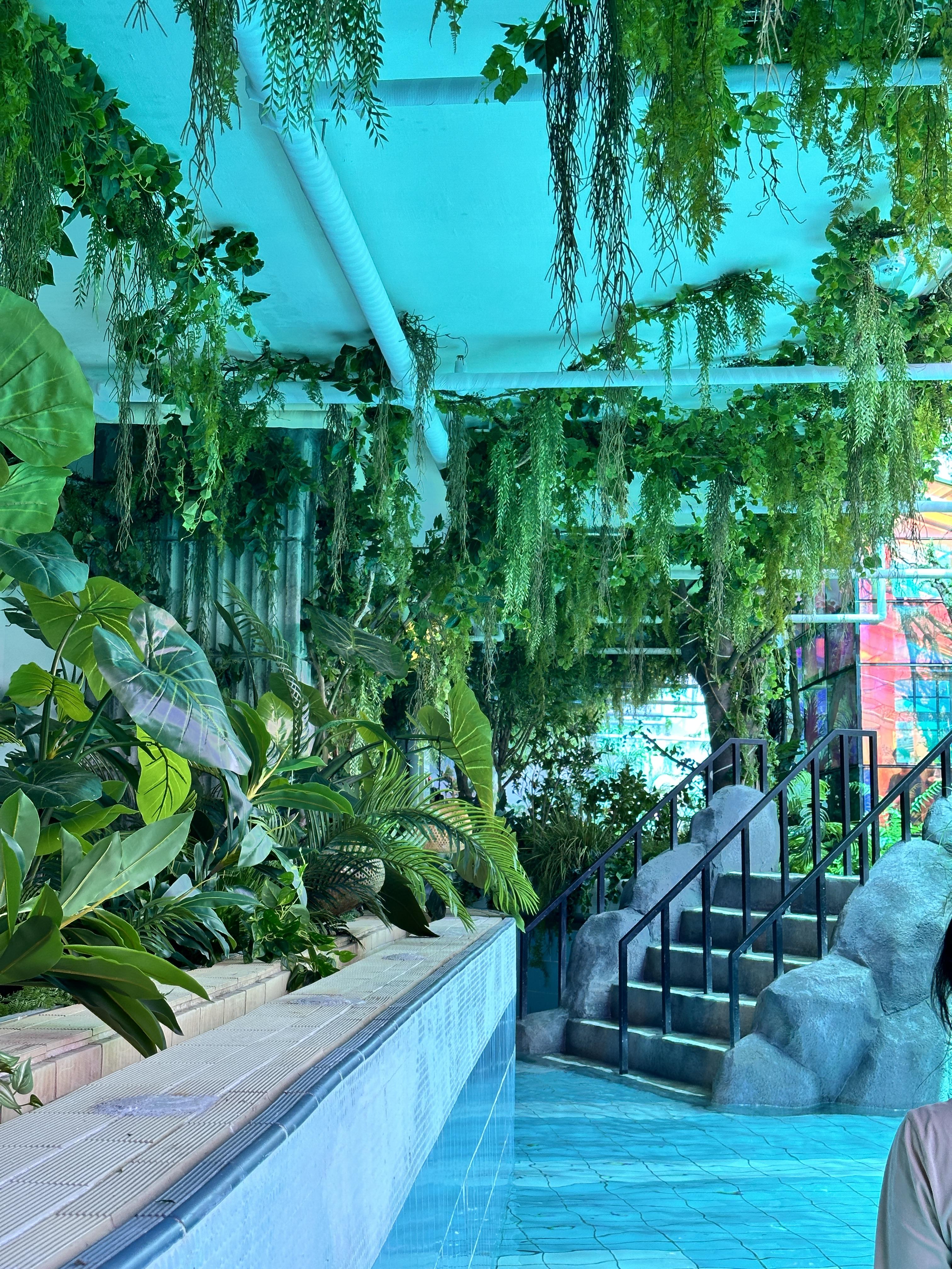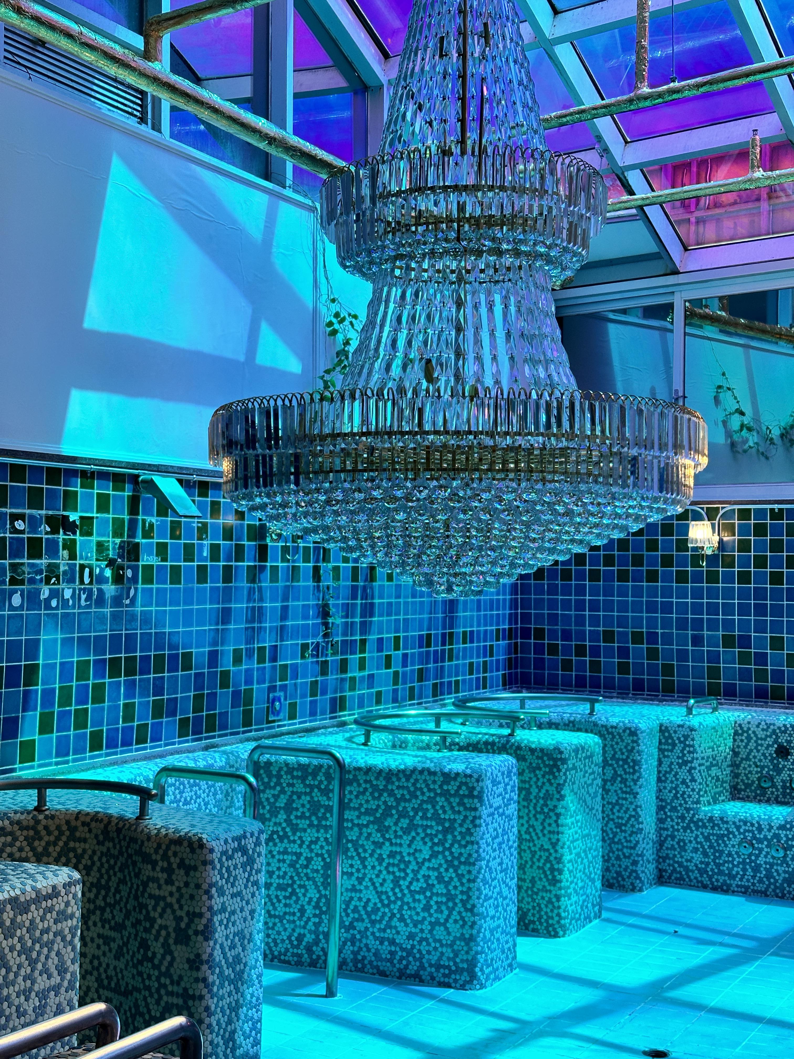 워터파크 이용 공간은 그대로 살리고, 미디어 아트 전시를 공간마다 꾸며 노은 전시관입니다.