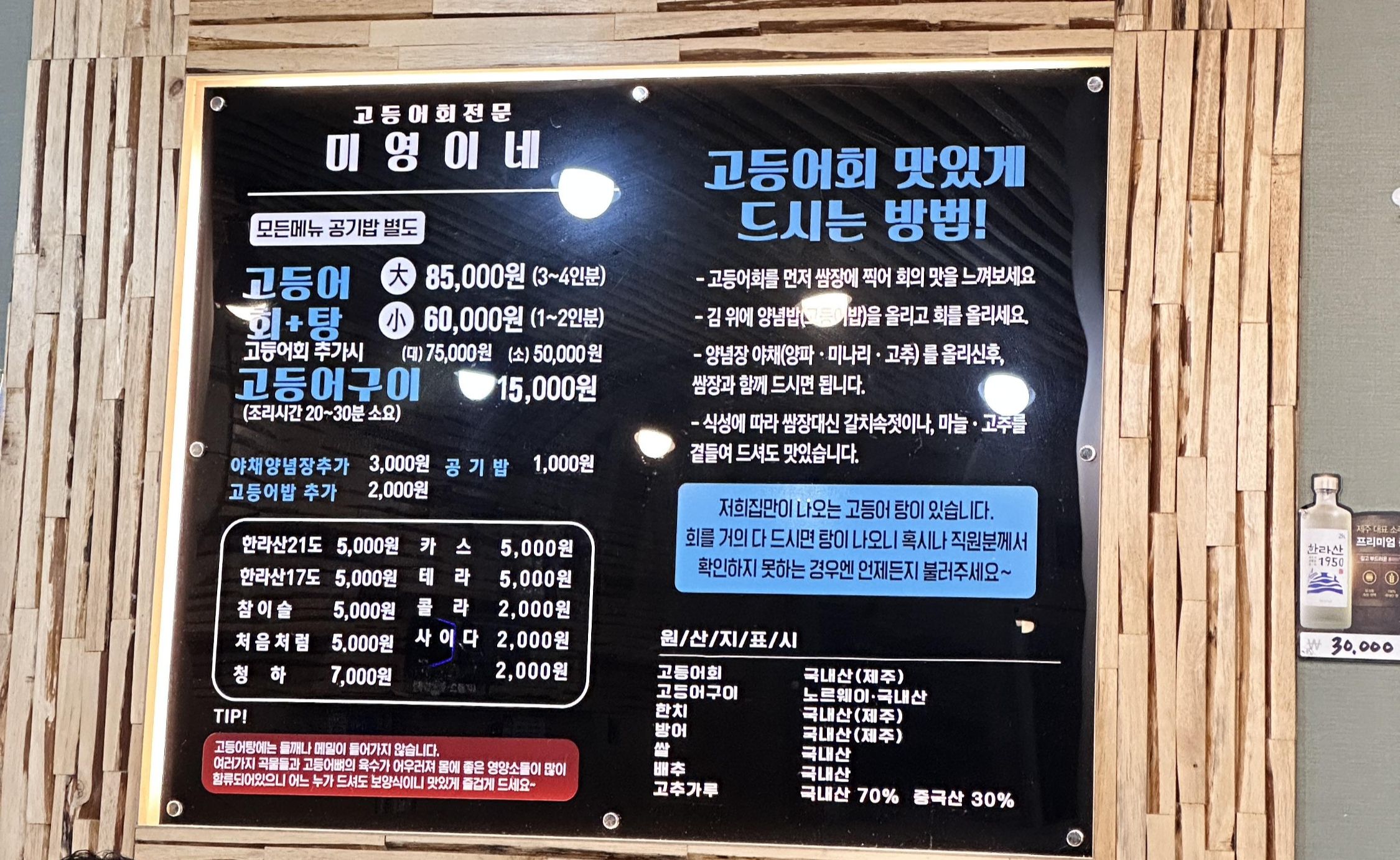 제주도 대정 고등어회와 고등어 맑은 국이 맛있는 집! (킹정)