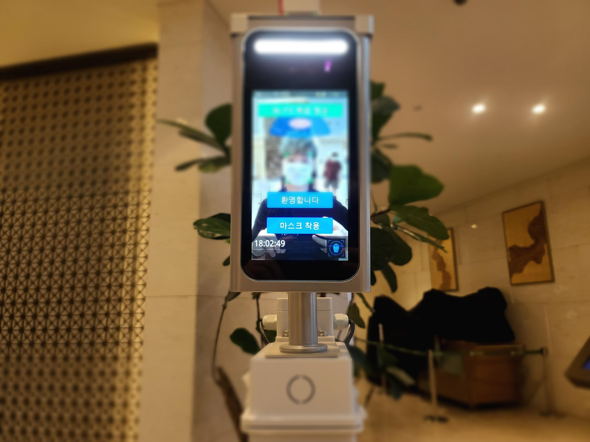 로비에 들어가기 전 온도 체크를 하고 입장했습니다.