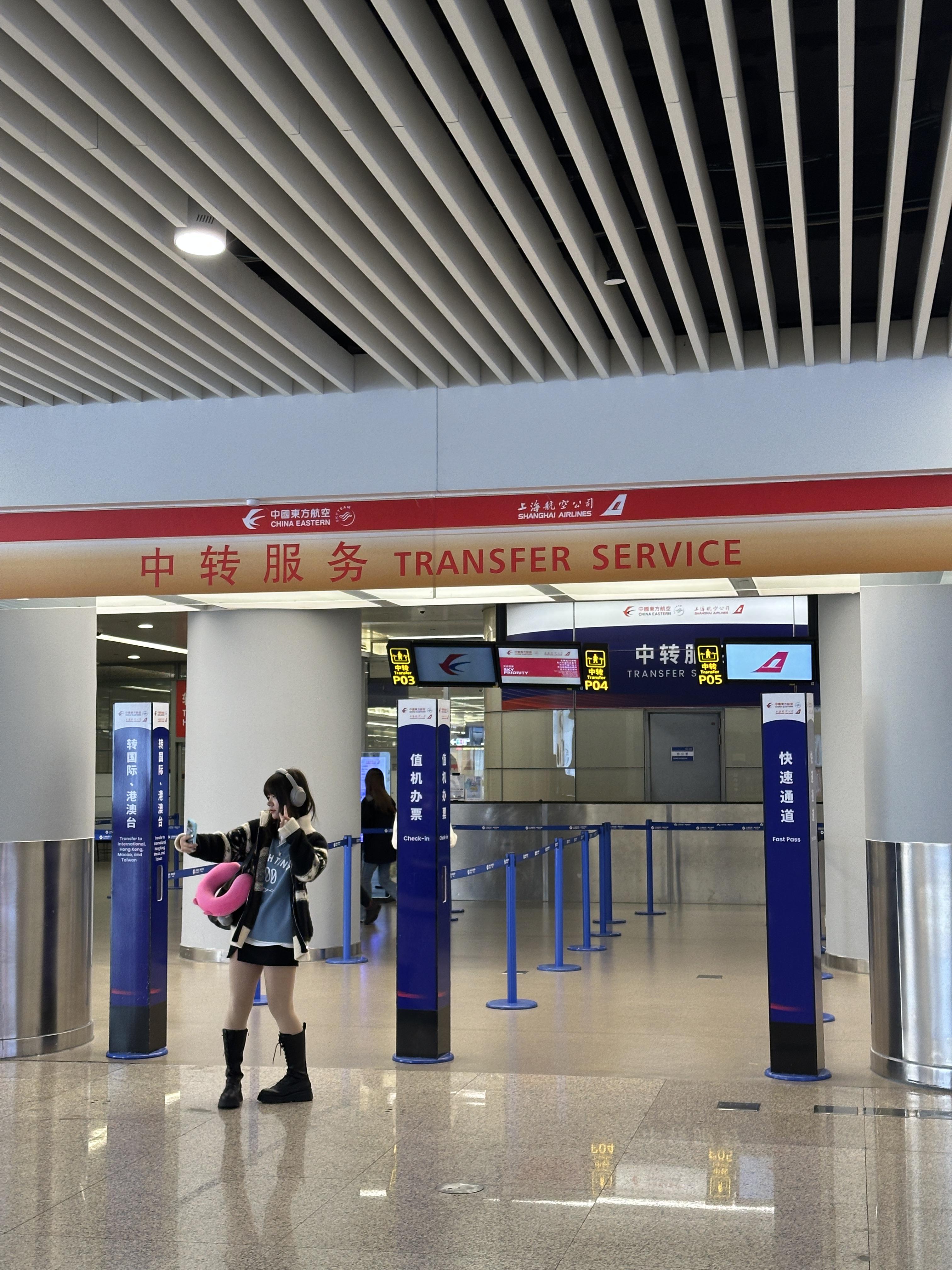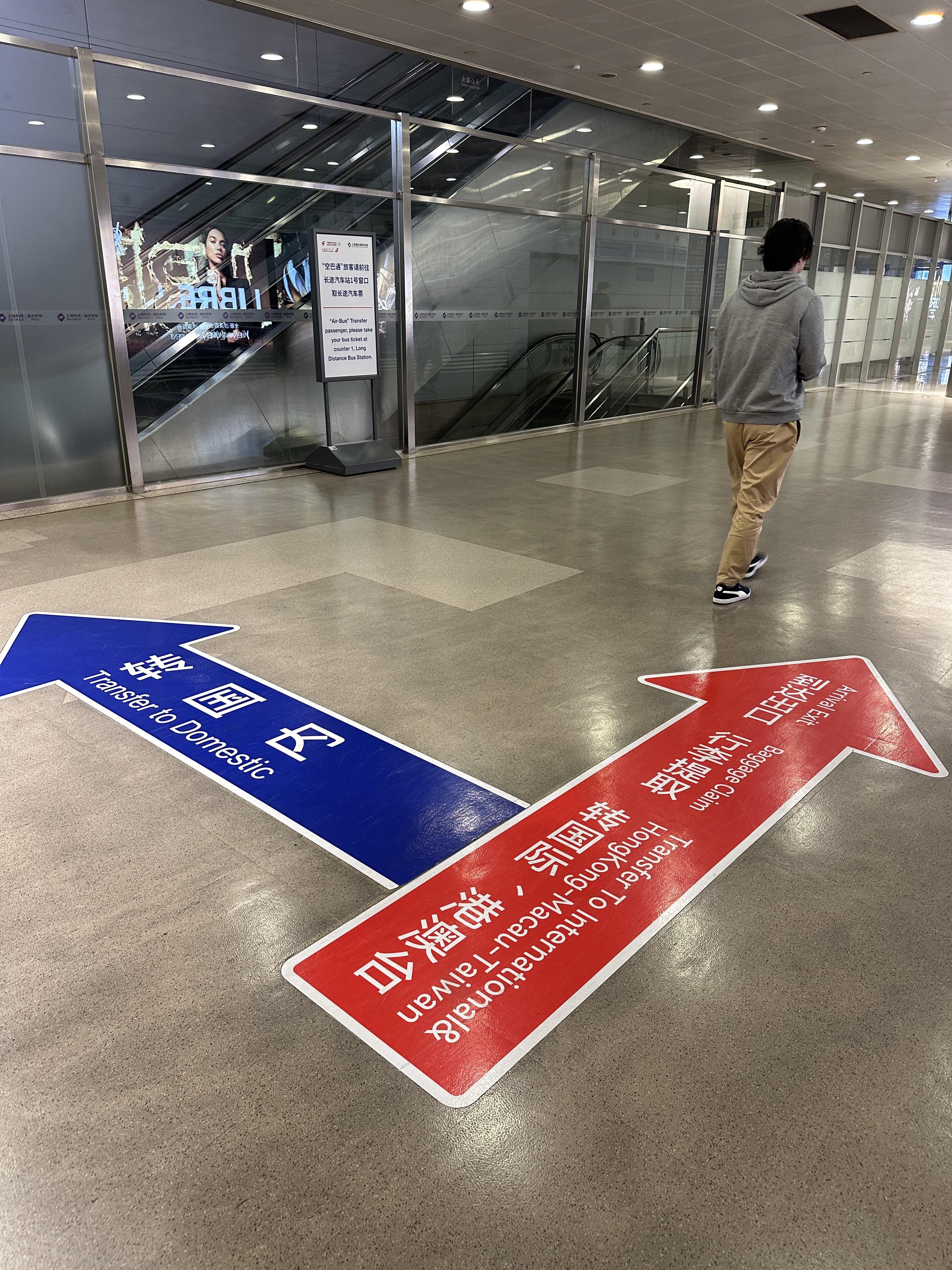 한국에서 상해 경유, 중국 내로 가는 경우 환승 표시를 따라 파란색을 따라간다!