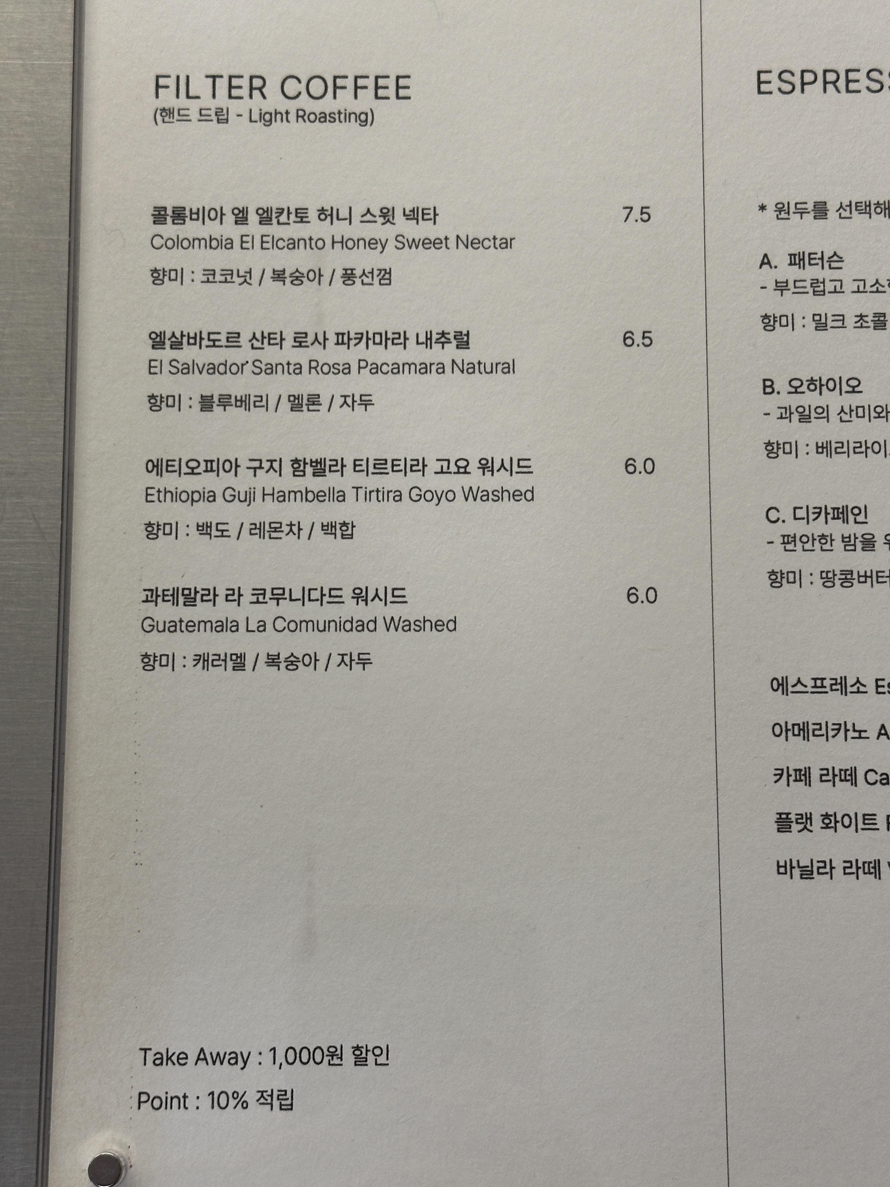 핸드드립 커피는 조금 더 단가가 있지만,