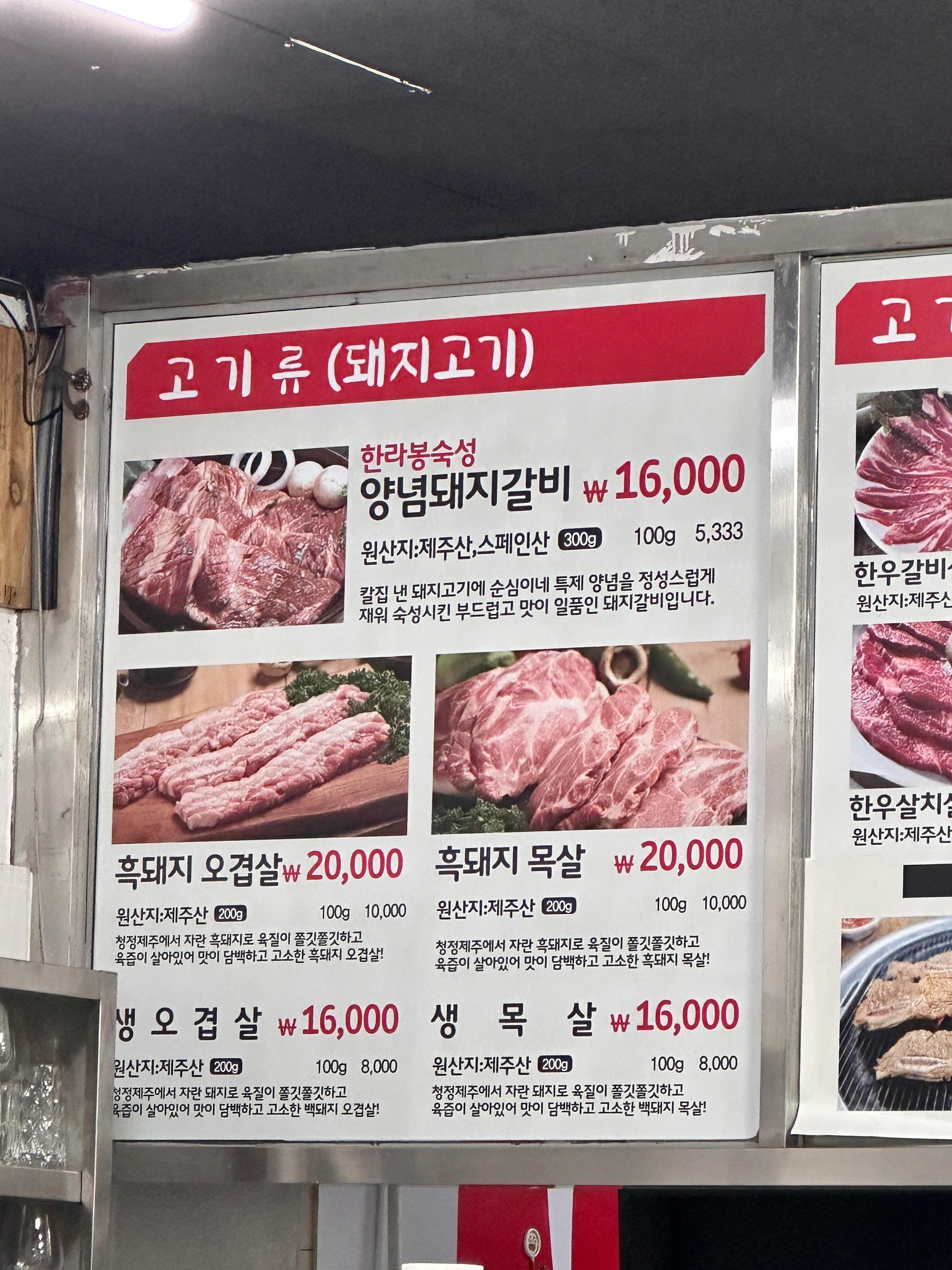 돼지고기도 판매하고, 그리고 양념갈비도 판매합니다.