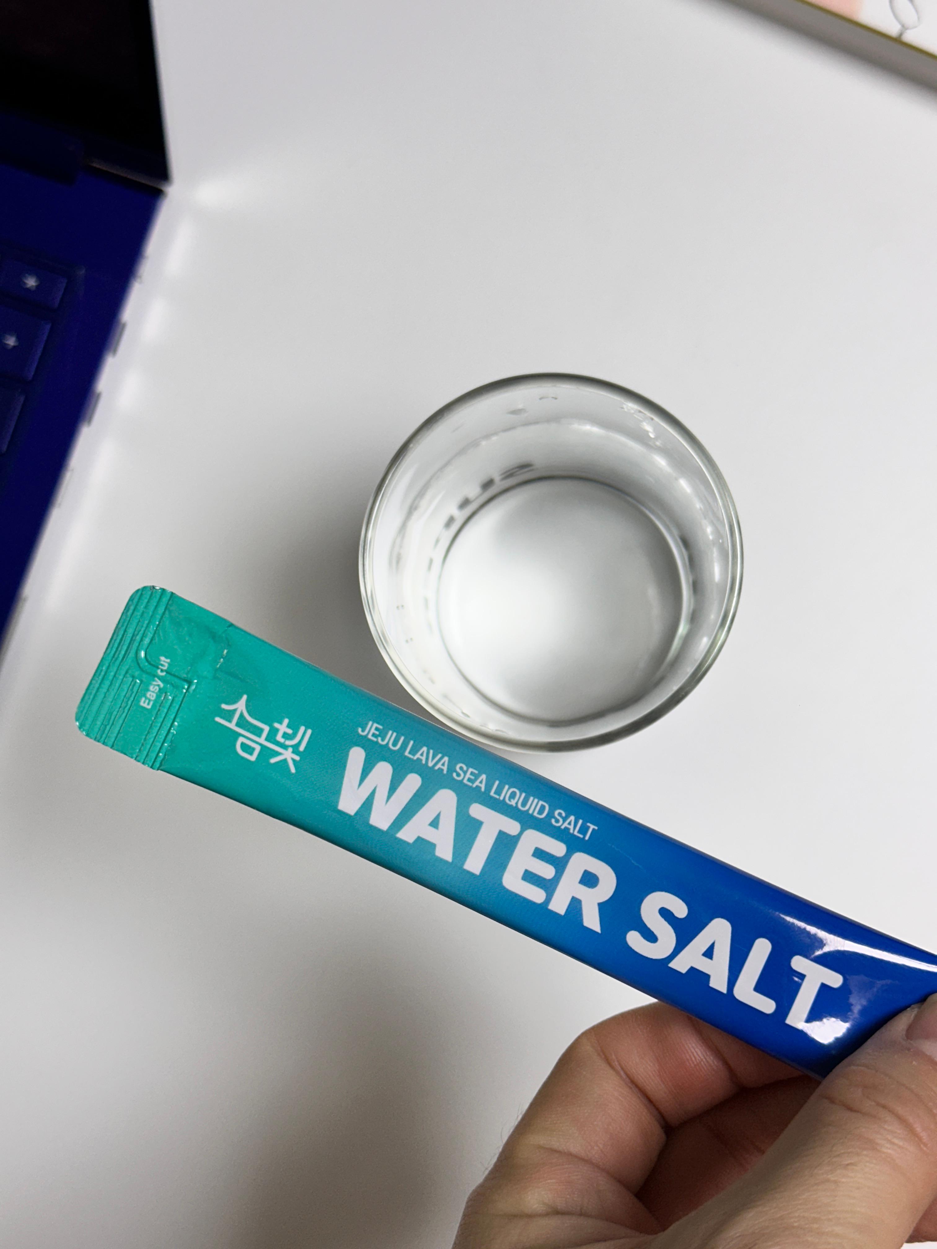 제주 용암해수로 만든 물에 타서 먹는 소금~! 물 500ml에 한포 타서 마시면 된다고 한다.