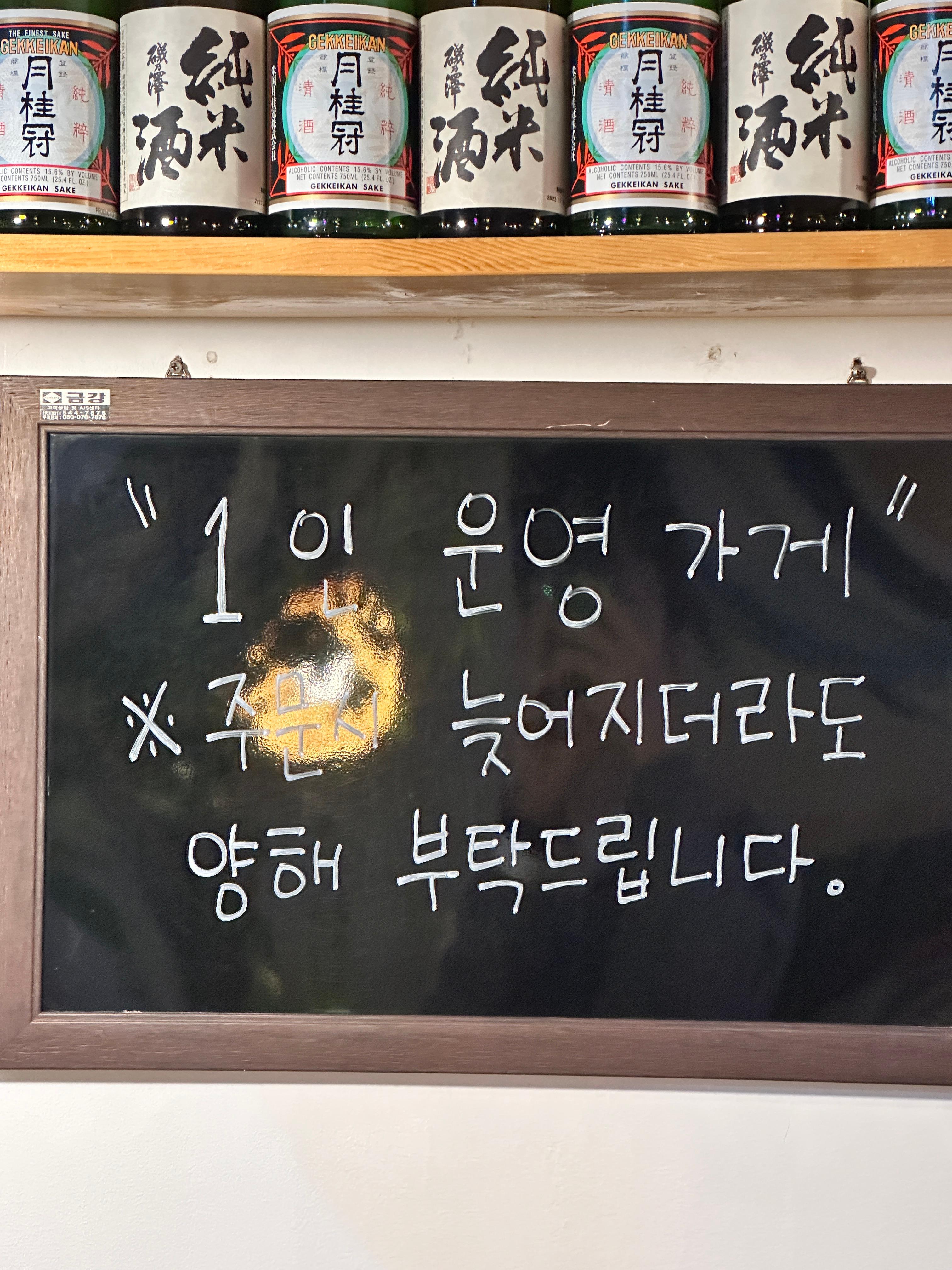 이렇게 1인 식당으로 주문시 늦더라도 양해해 달라고 안내되어 있었어요.