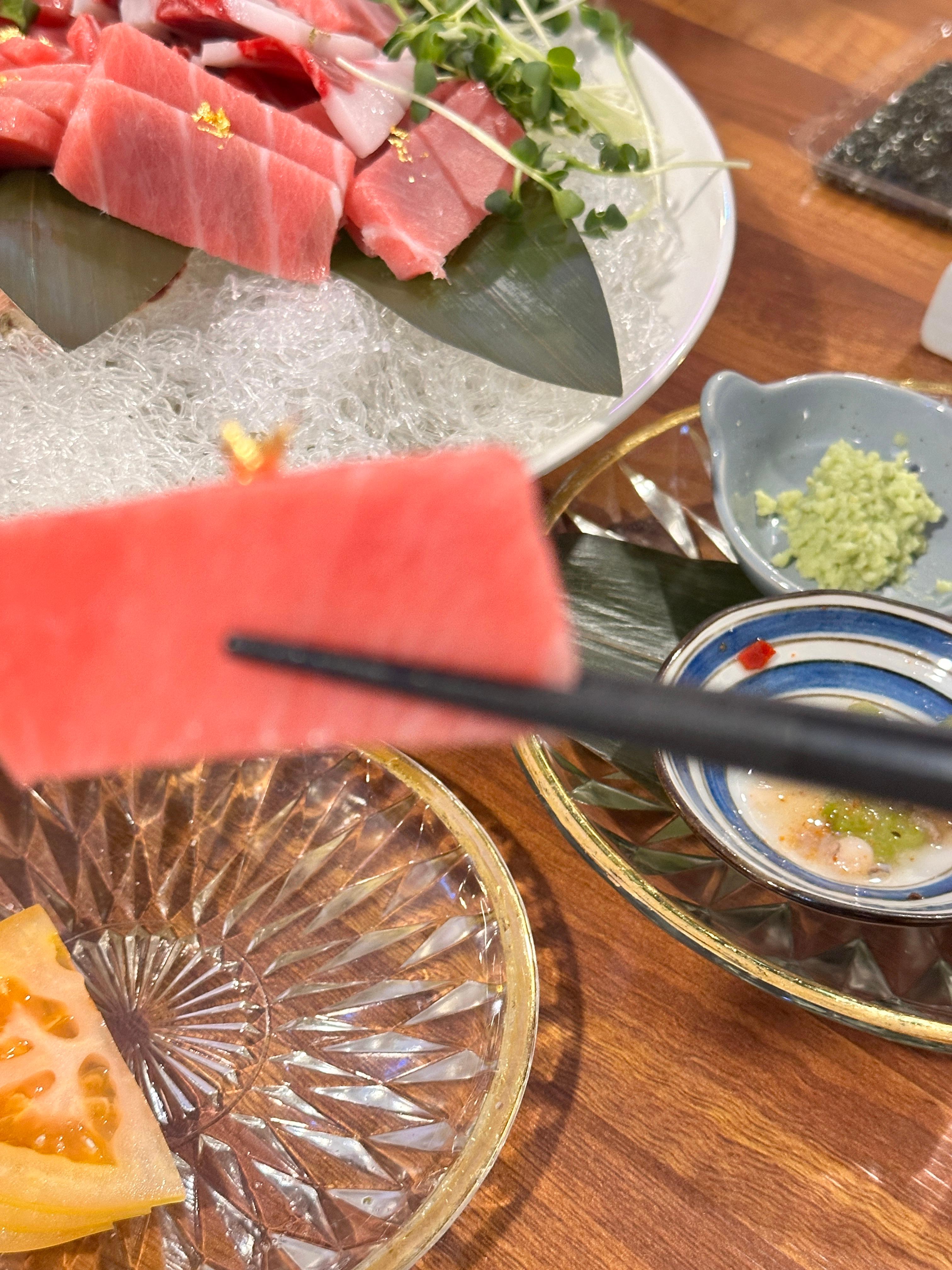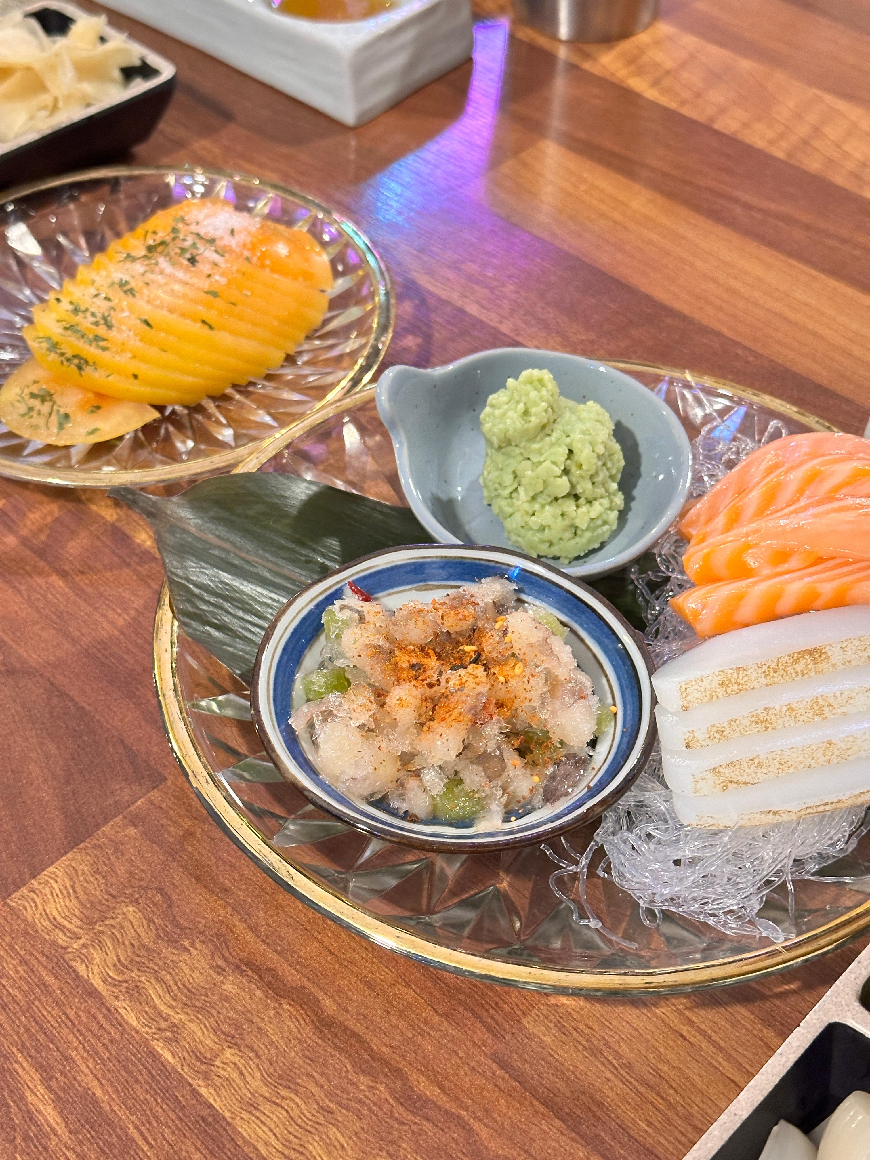 참치회 한 접시와, 초밥, 고로케, 우삼겹 전골 ~