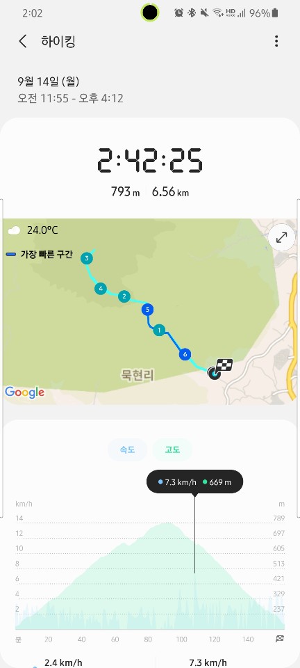 정상까지 2.4km 남았다고~ ㅎㅎ