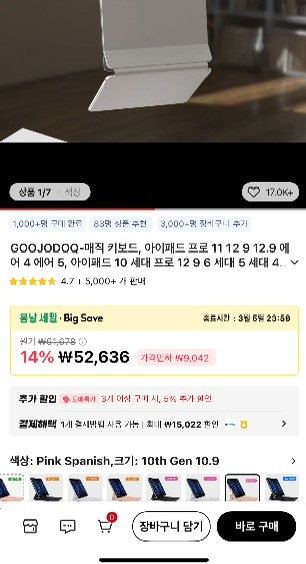 가격이 5만 2천 원 정도였습니다. (배송비도 포함)