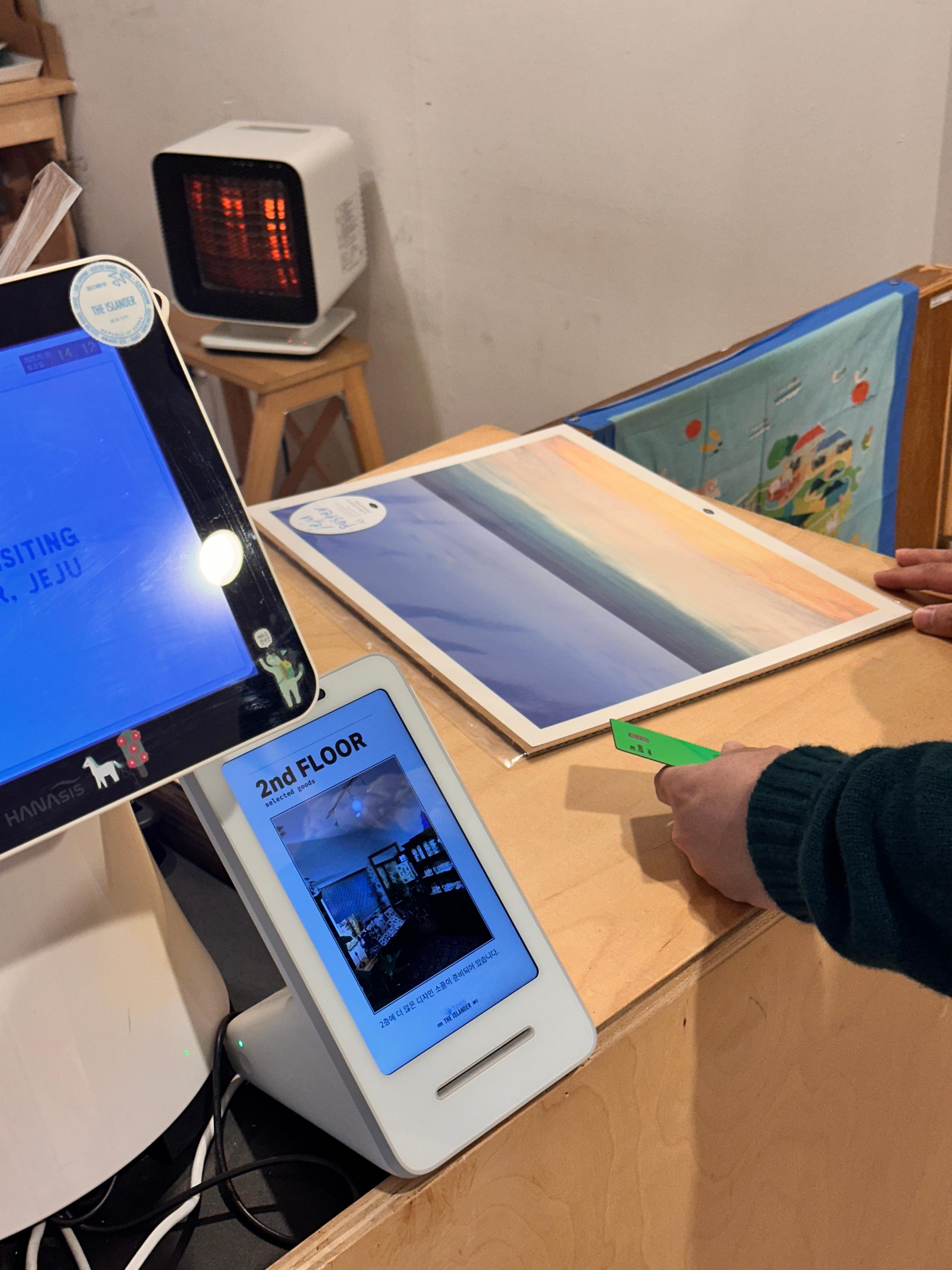 같이 간 친구는 제주 자연의 포스터를 구매합니다.