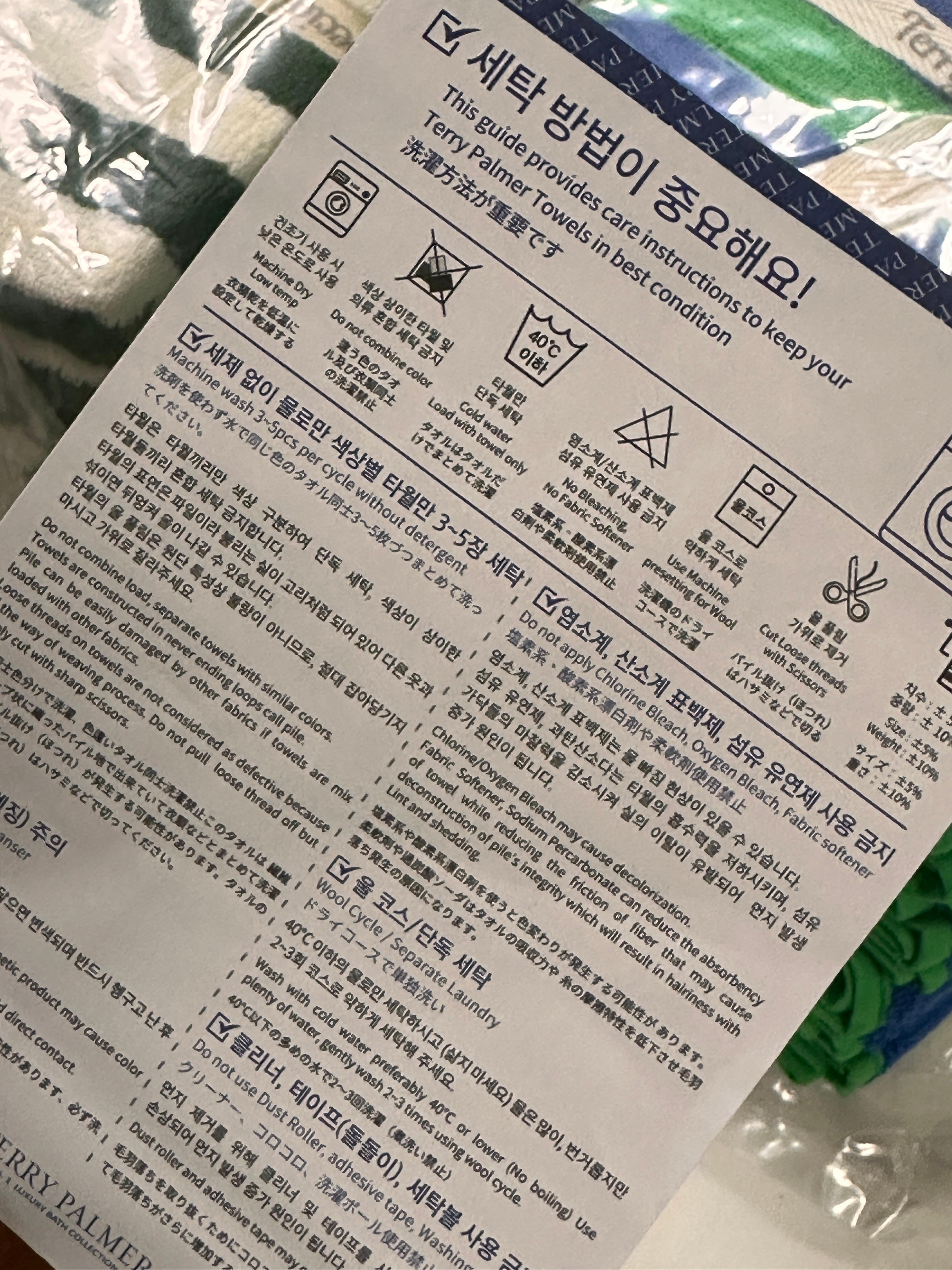 건조기는 낮은 온도로 사용하고, 수건은 수건만 따로 세탁하고 온도는 40도 이하로 세탁한다~