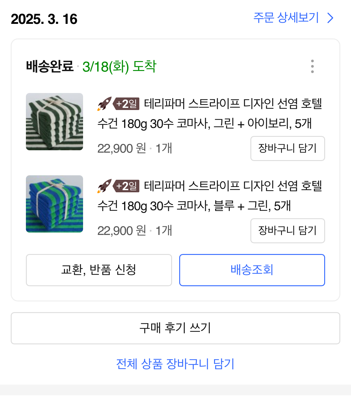 쿠팡이라 빠른 배송 빠르게 수건을 받았습니다.