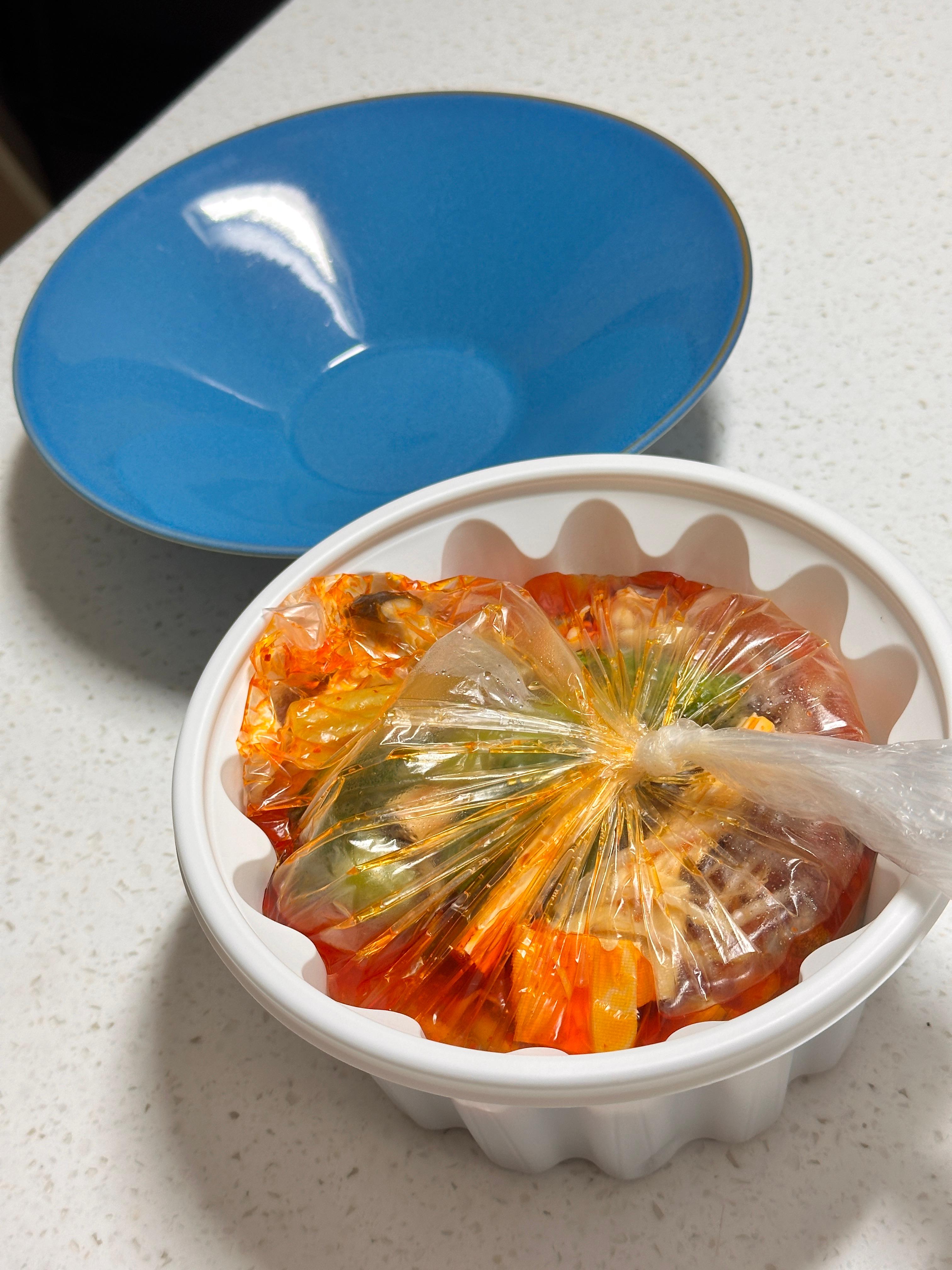 오~~~ 이렇게 비닐에서 덜고 있는데 마라향 무엇! 최고! (마라탕은 1만 5천원 결제!)