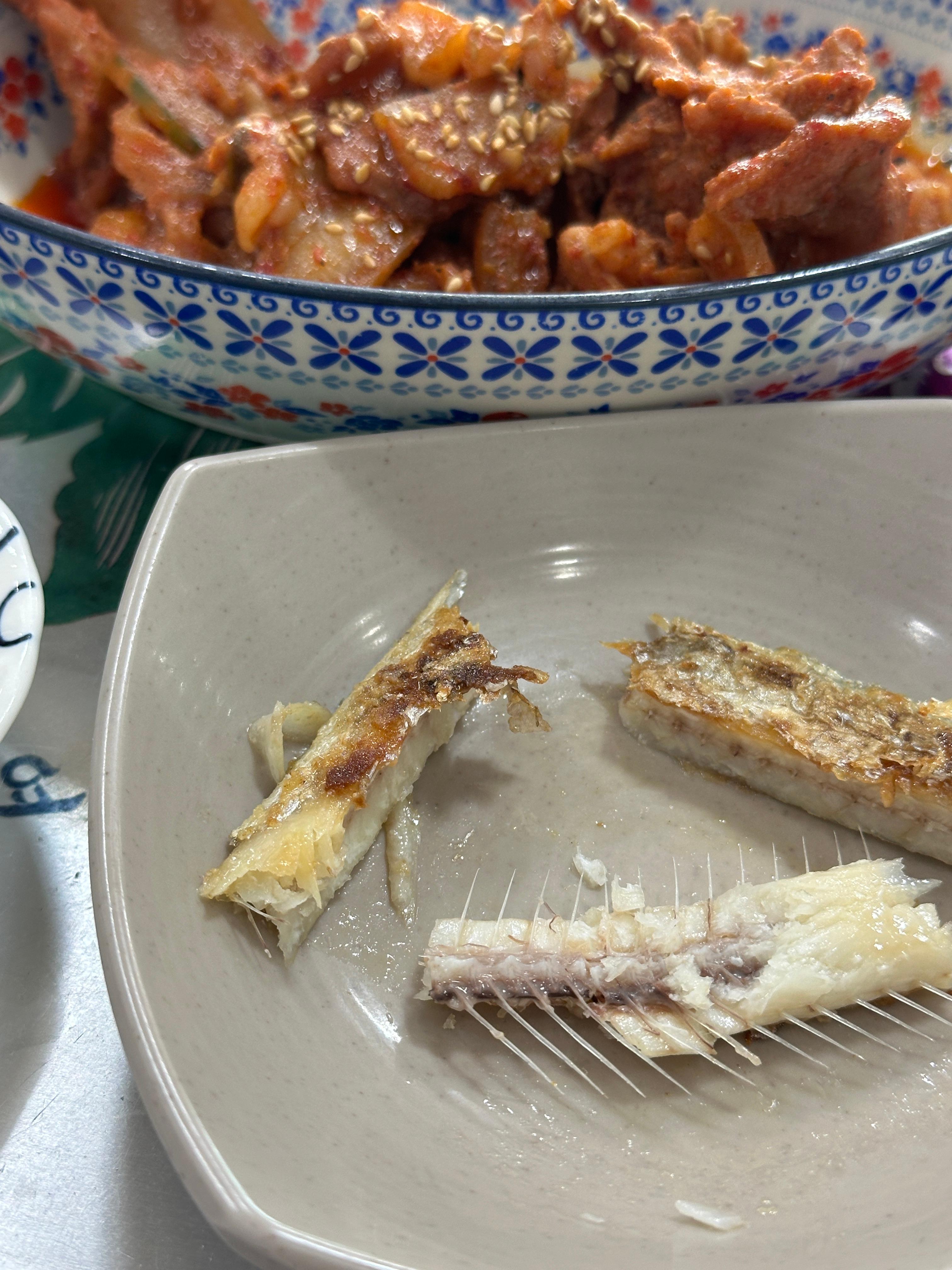 그리고 어떤 생선은 가시가 너무 않았 ;;;어 ㅠㅠ 귀차니즘은 그 생선 먹지 않았다.