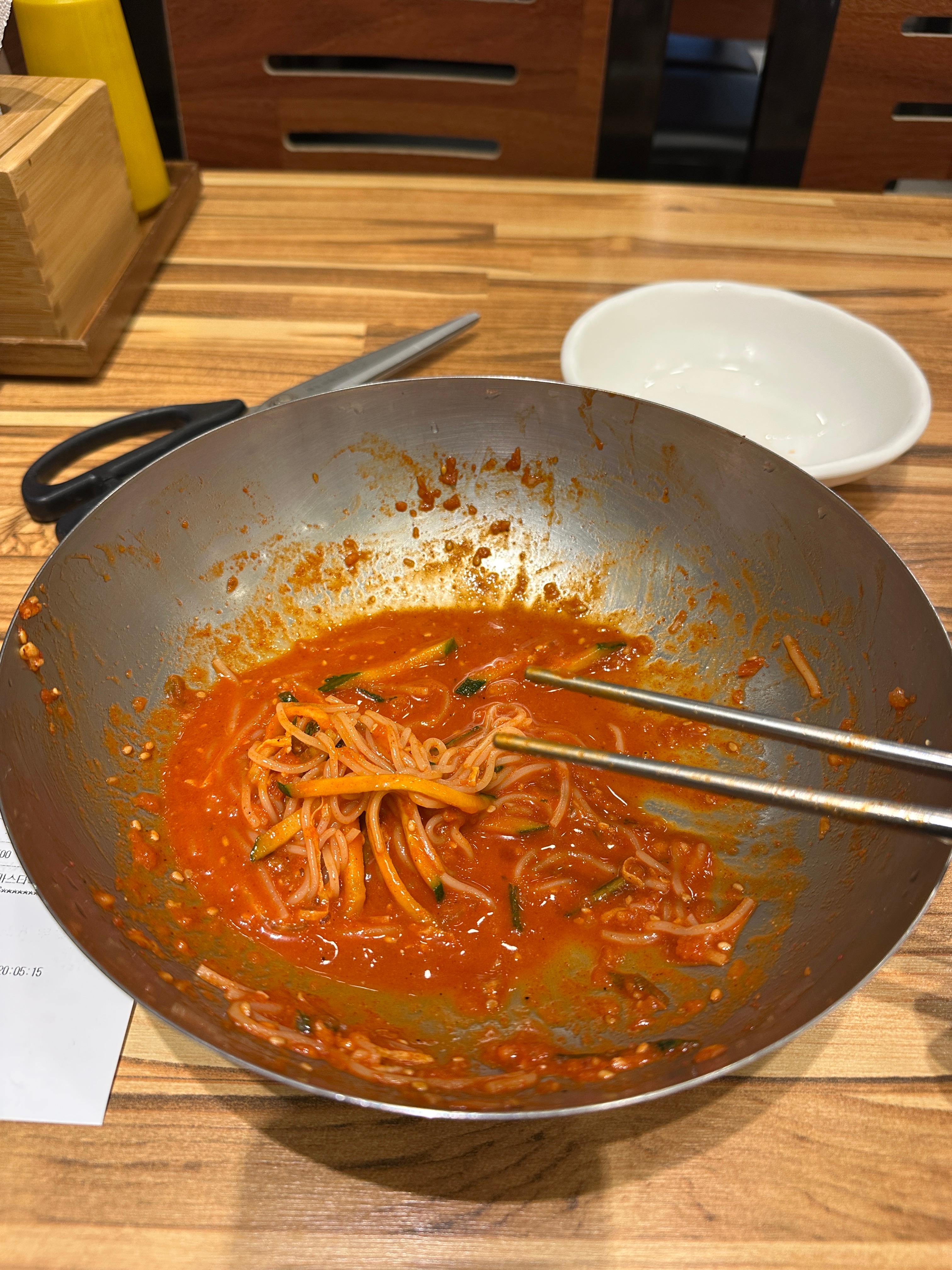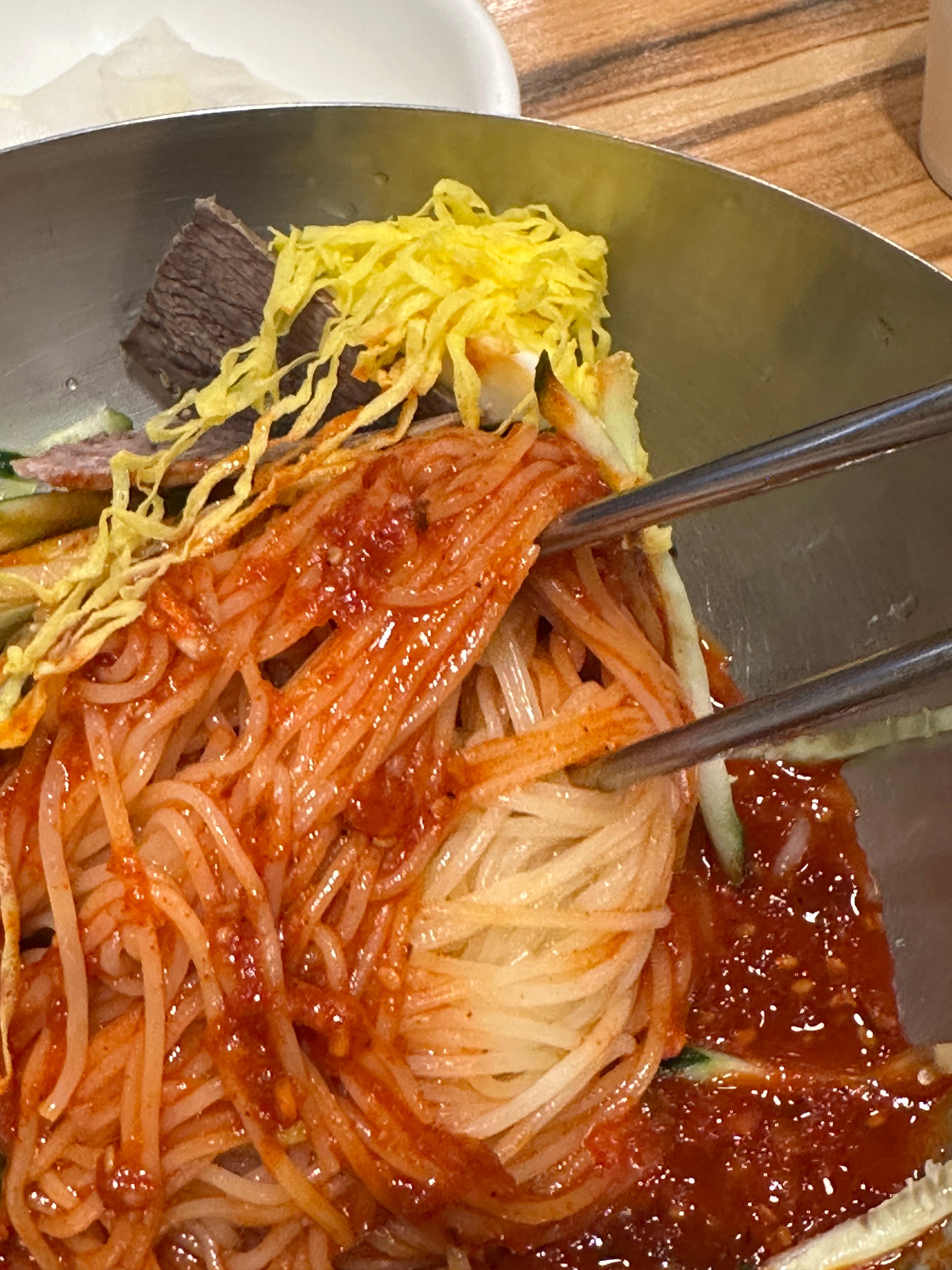 육수를 마시고 있으니, 드디어 비빔냉면이 나왔습니다.