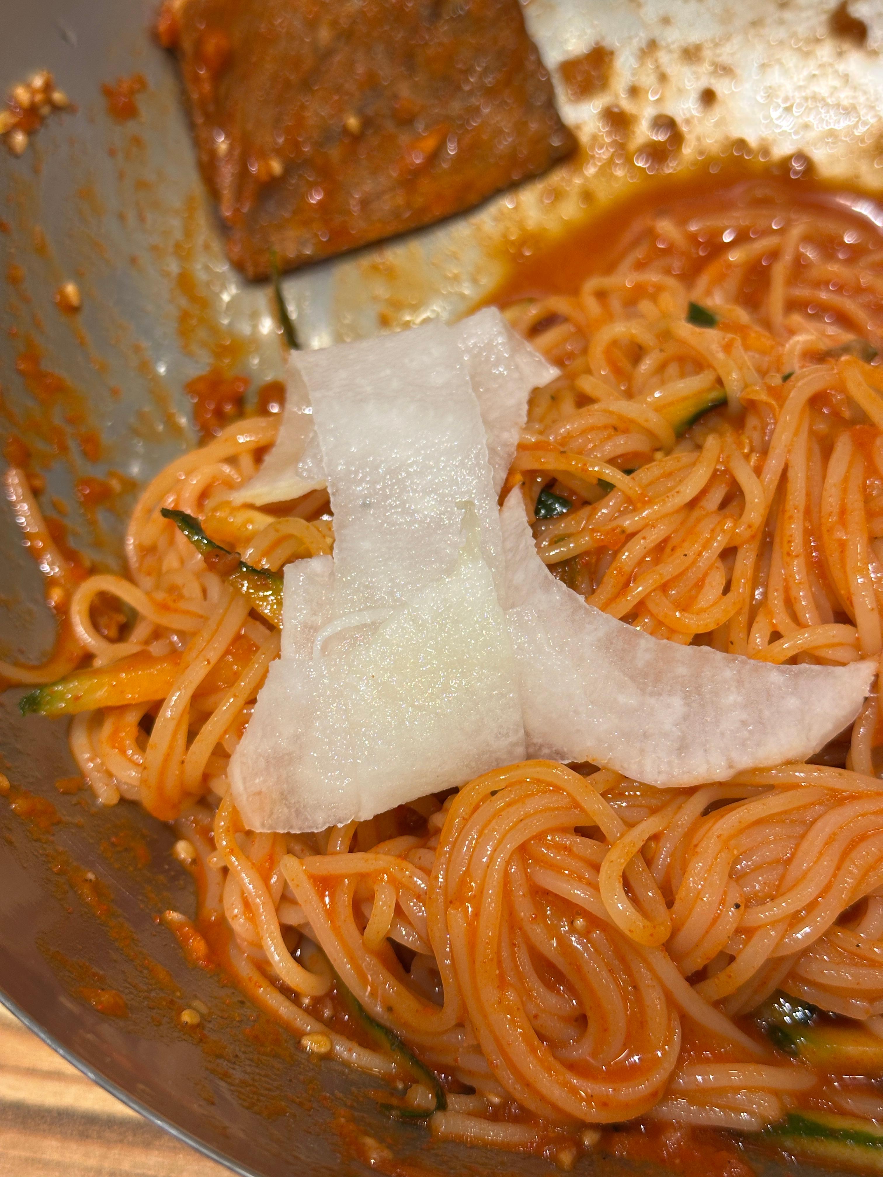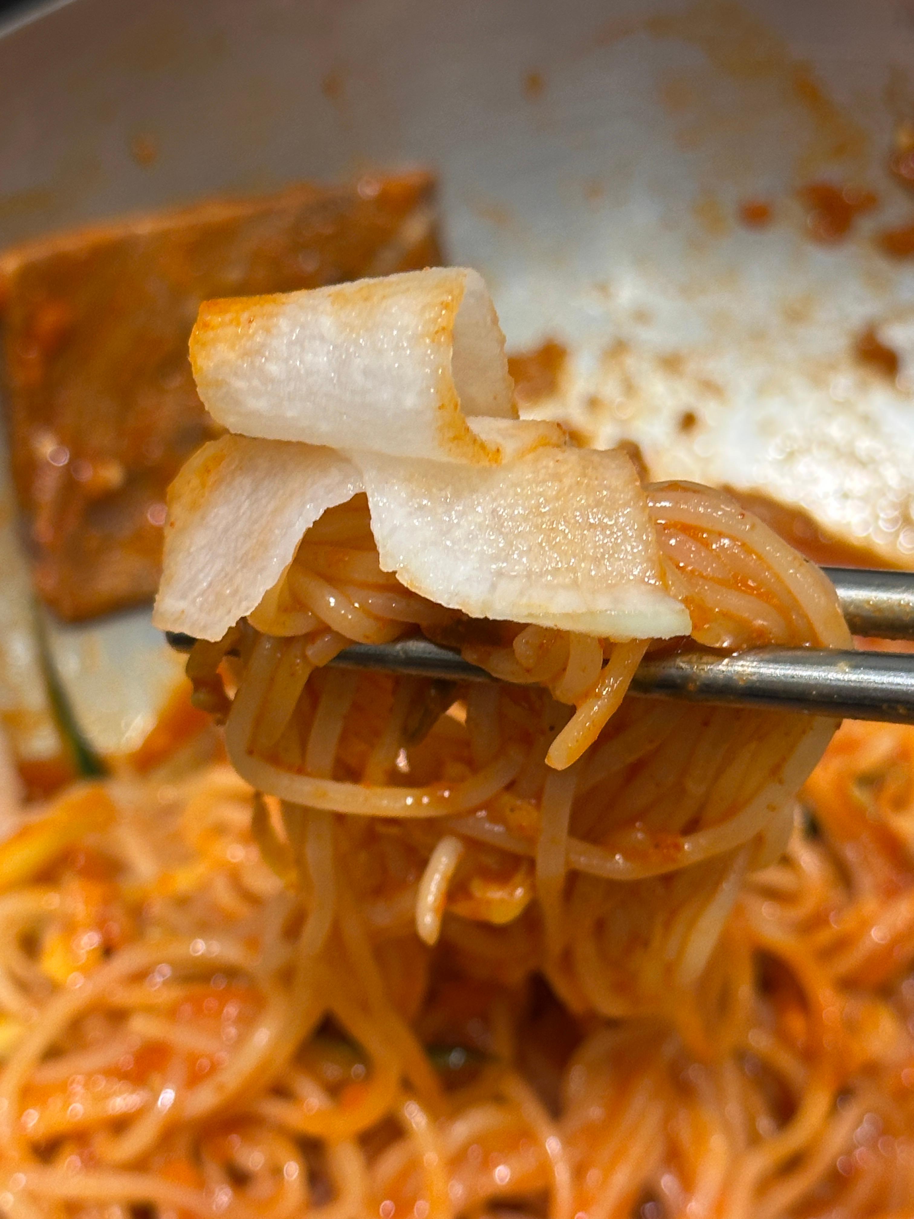 먹다가 무도 추가해 먹고요~! 또 먹다가 새콤함을 추가하고 싶어 겨자를 더 넣었습니다.