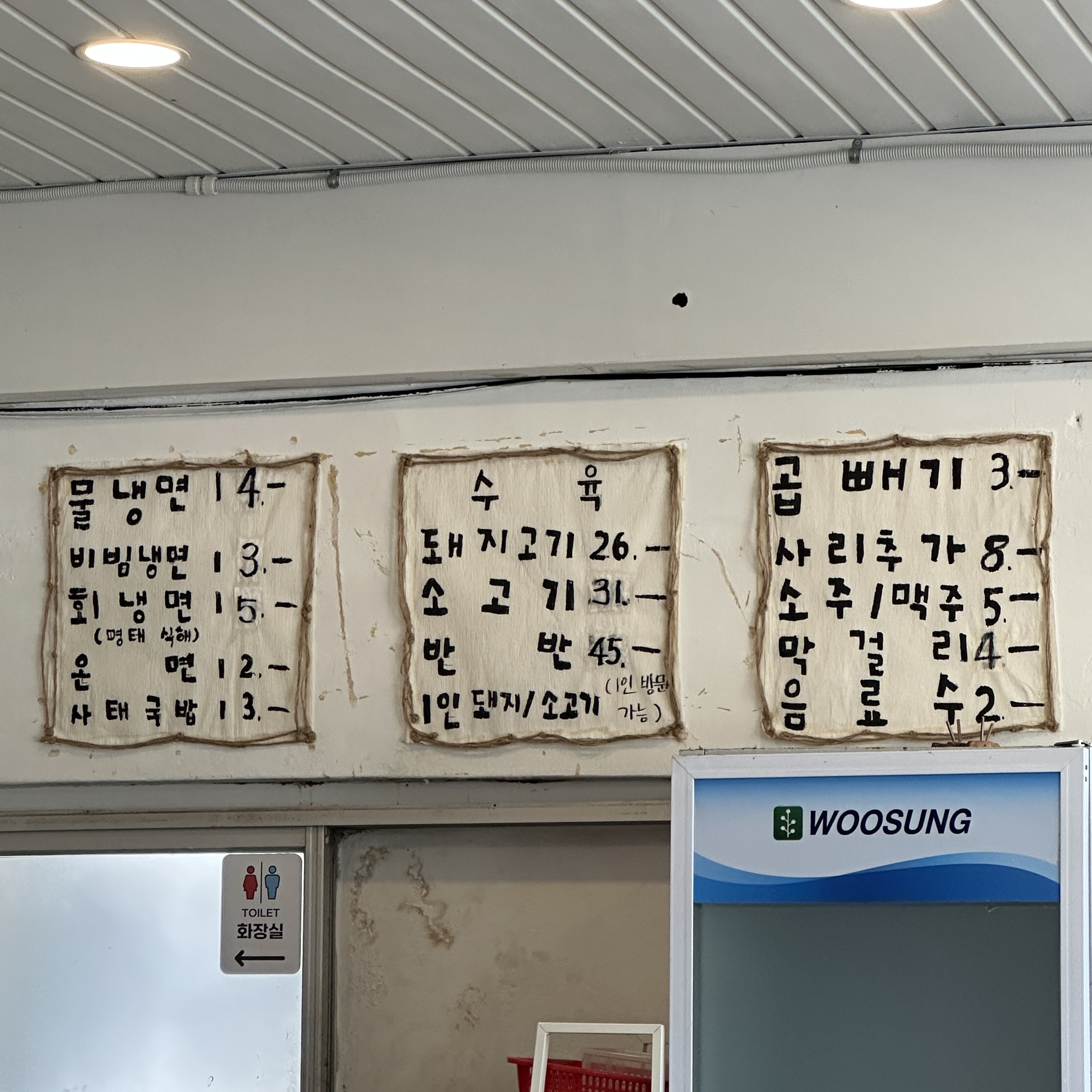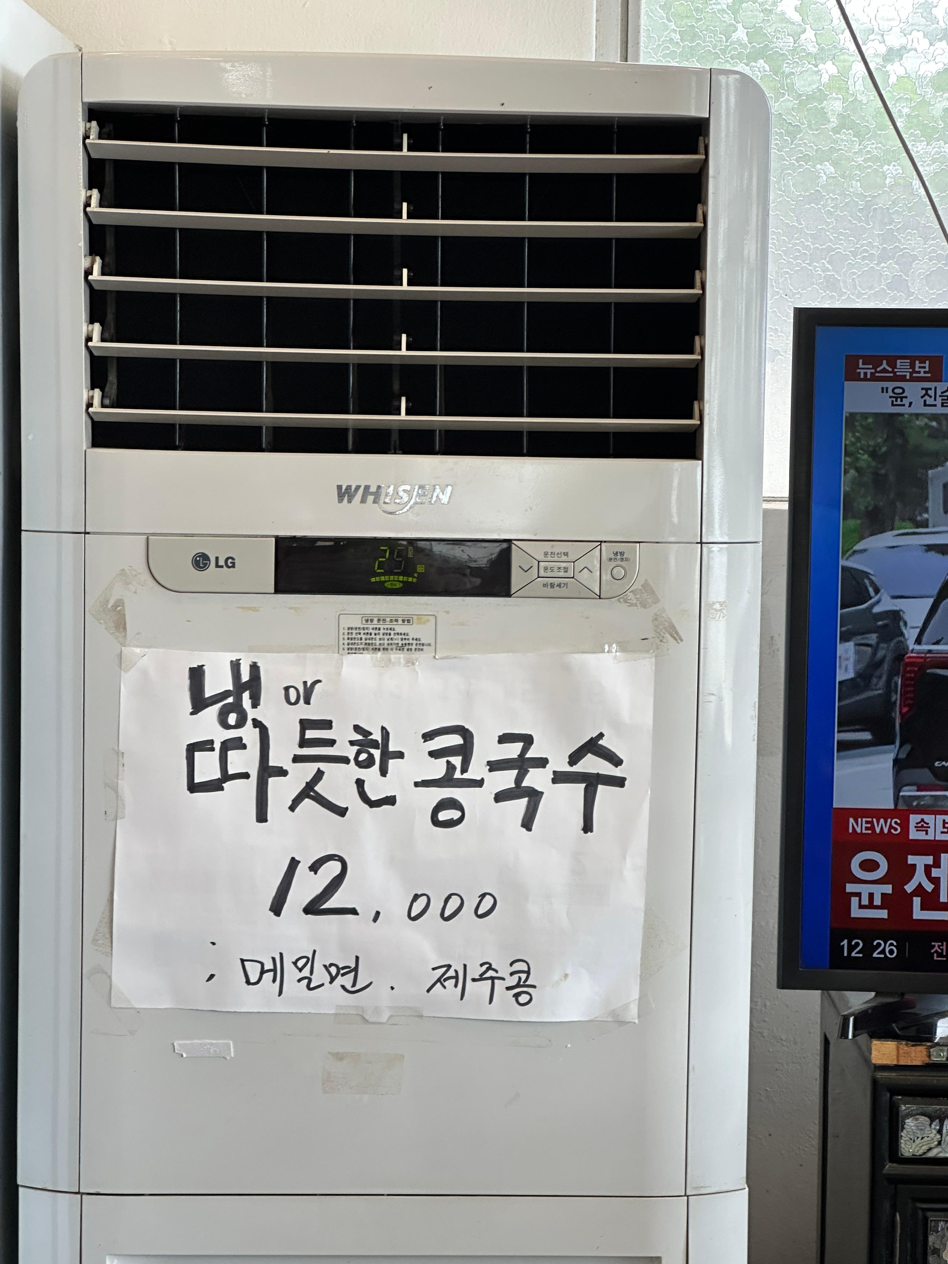 그러면서 내 시선에 보이는 에어컨 아래 있는 콩국수 판매 안내문!