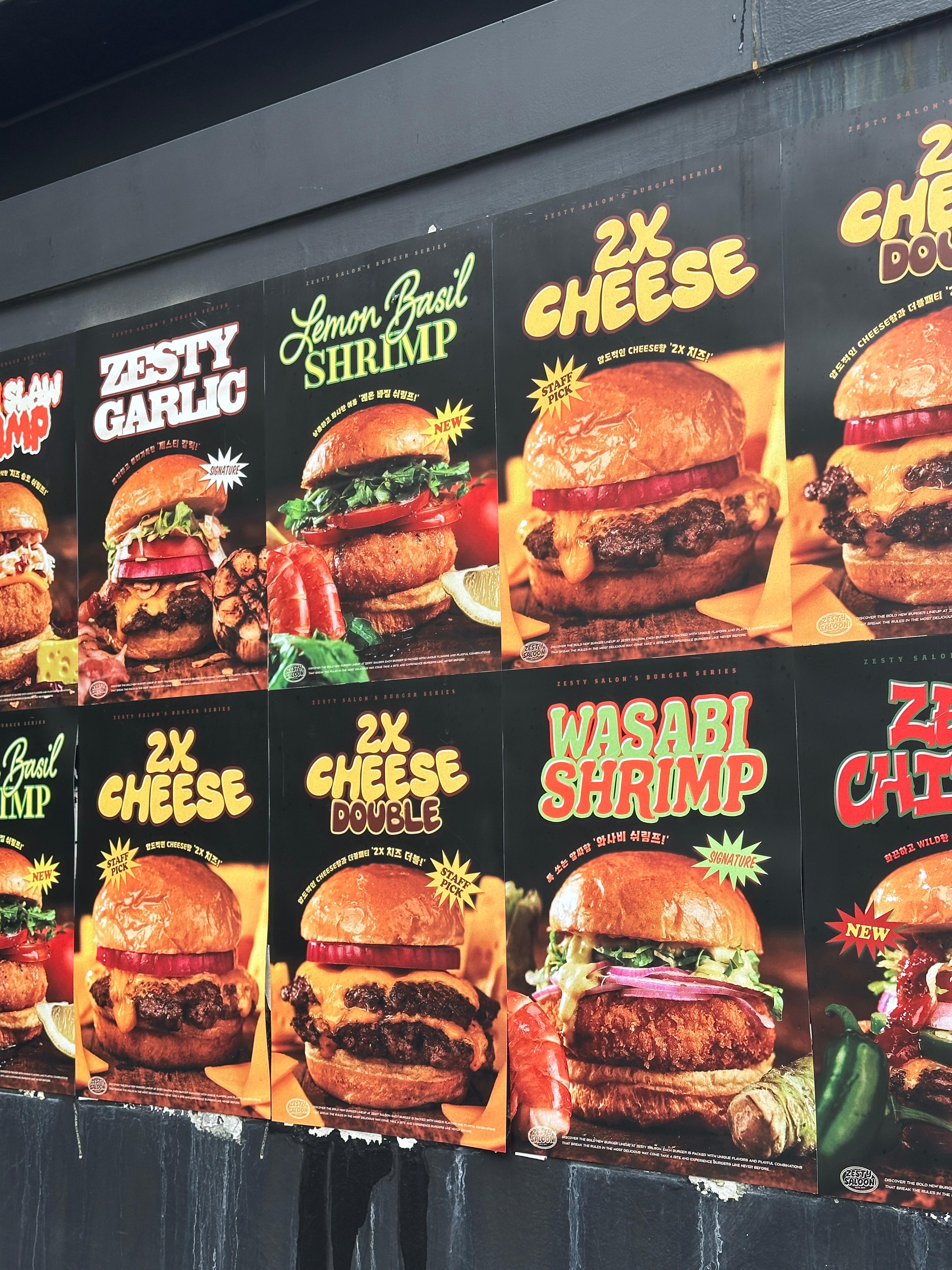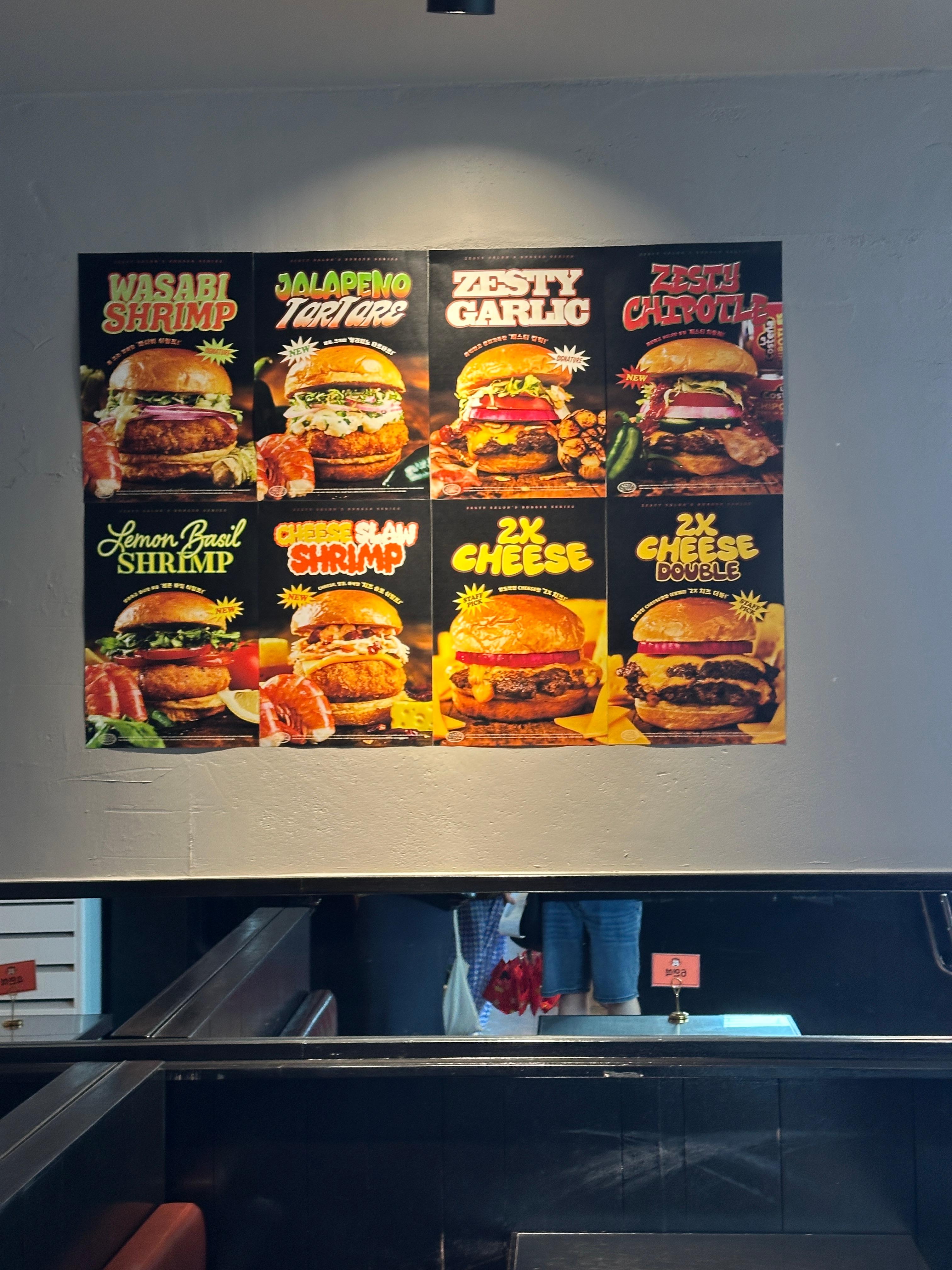 우선 제스티살룬 버거 종류와 가격 메뉴판을 보시라~~! ㅎ