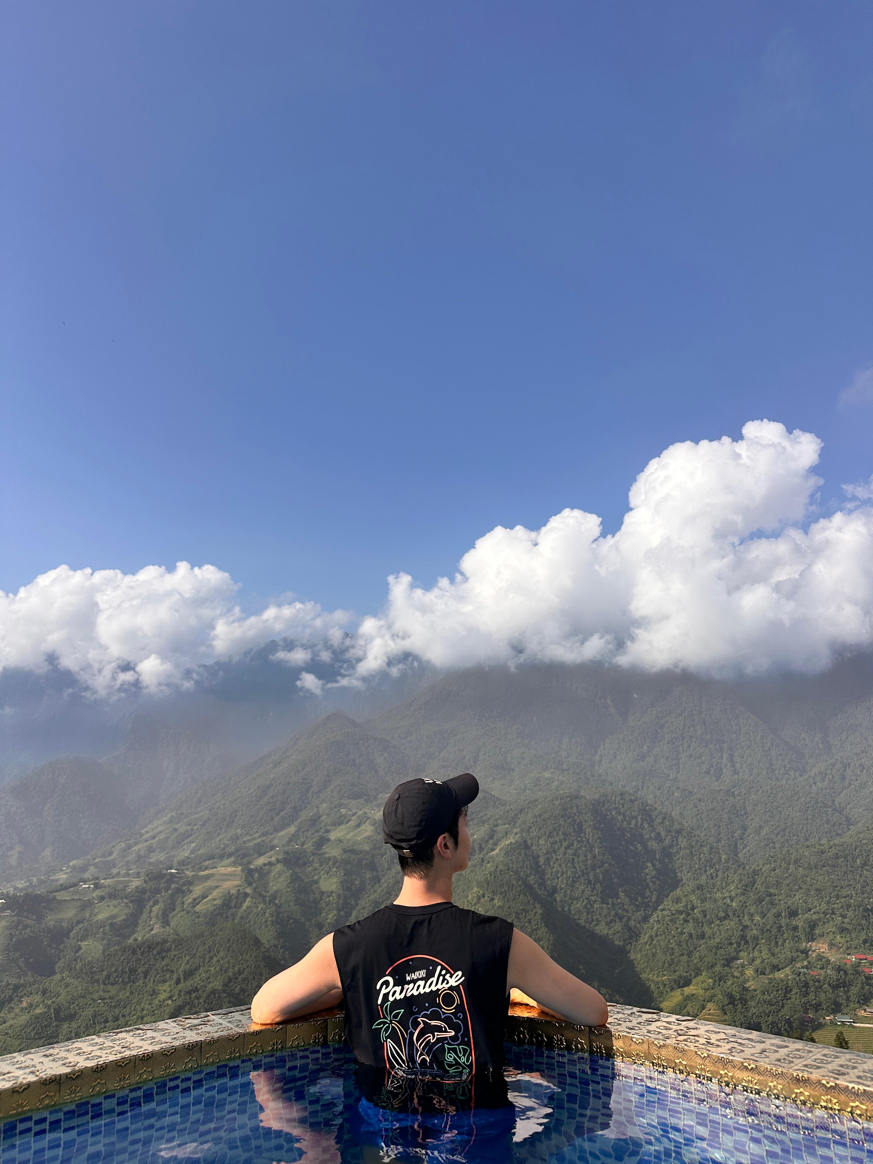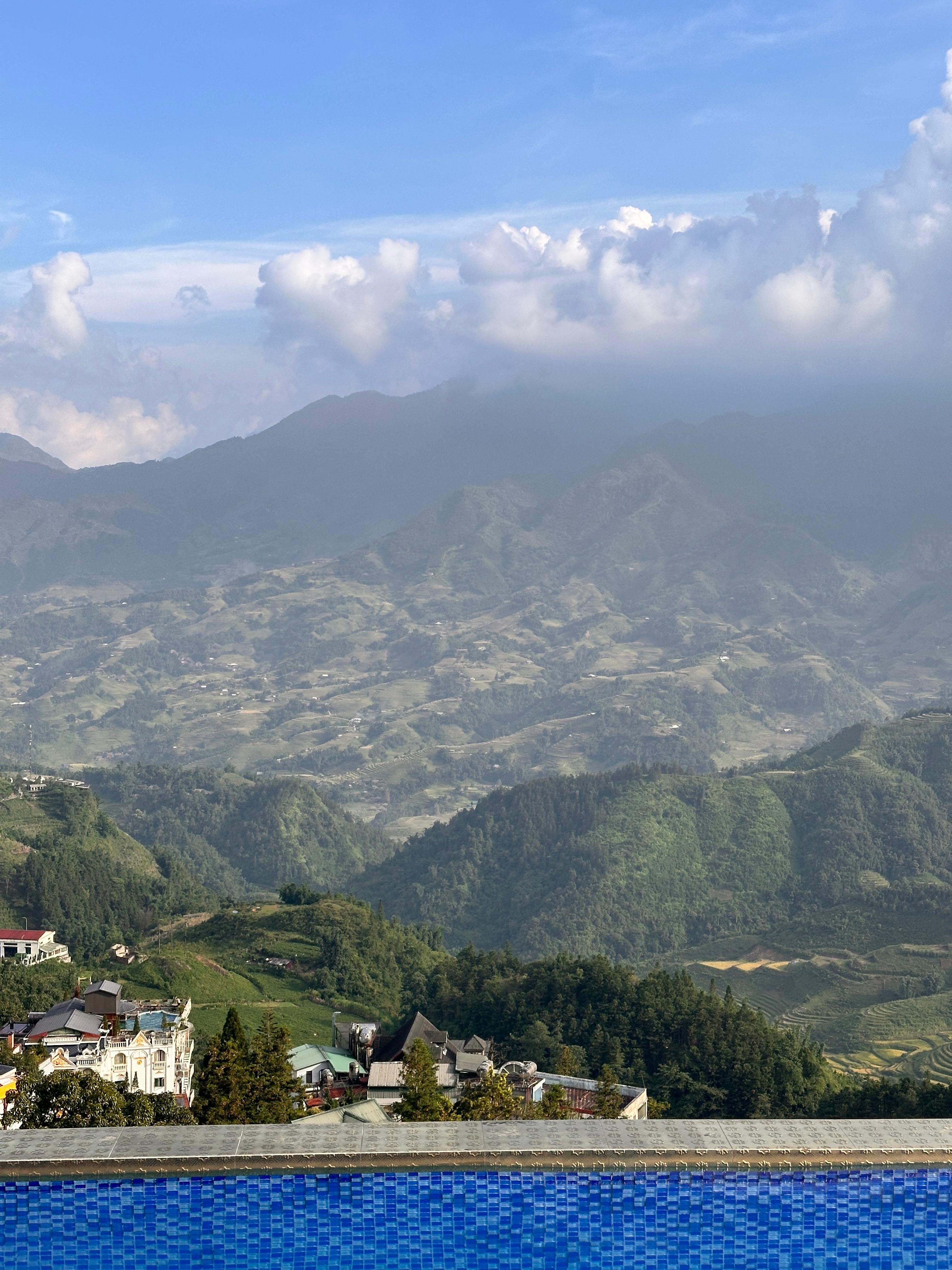 우앙~~~ 너무 멋지다! 사파의 계단식 논이 다 보이는, 그런 수영장 뷰입니다.