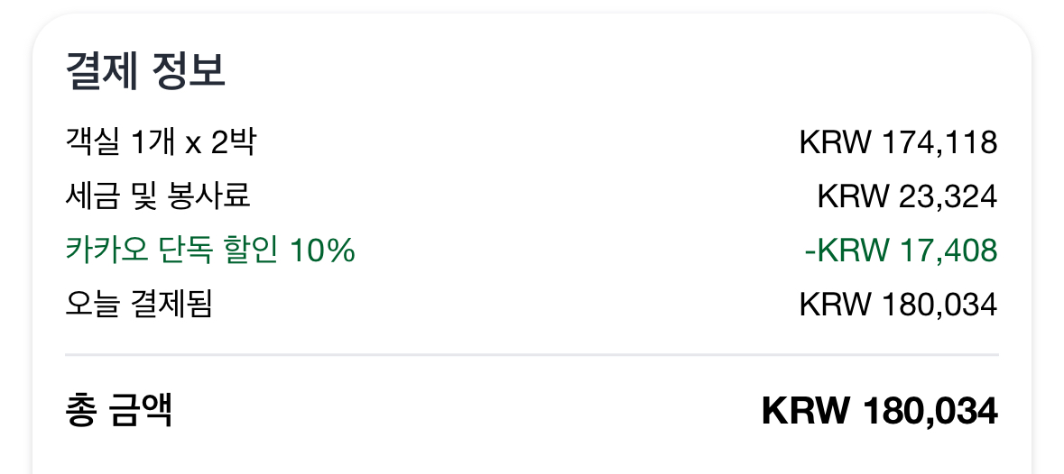 저는 아고다를 통한 예약을 했고, 2박 토일월 18만 원 선이었는데, 평일이면 더 저렴하겠다 싶었습니다.