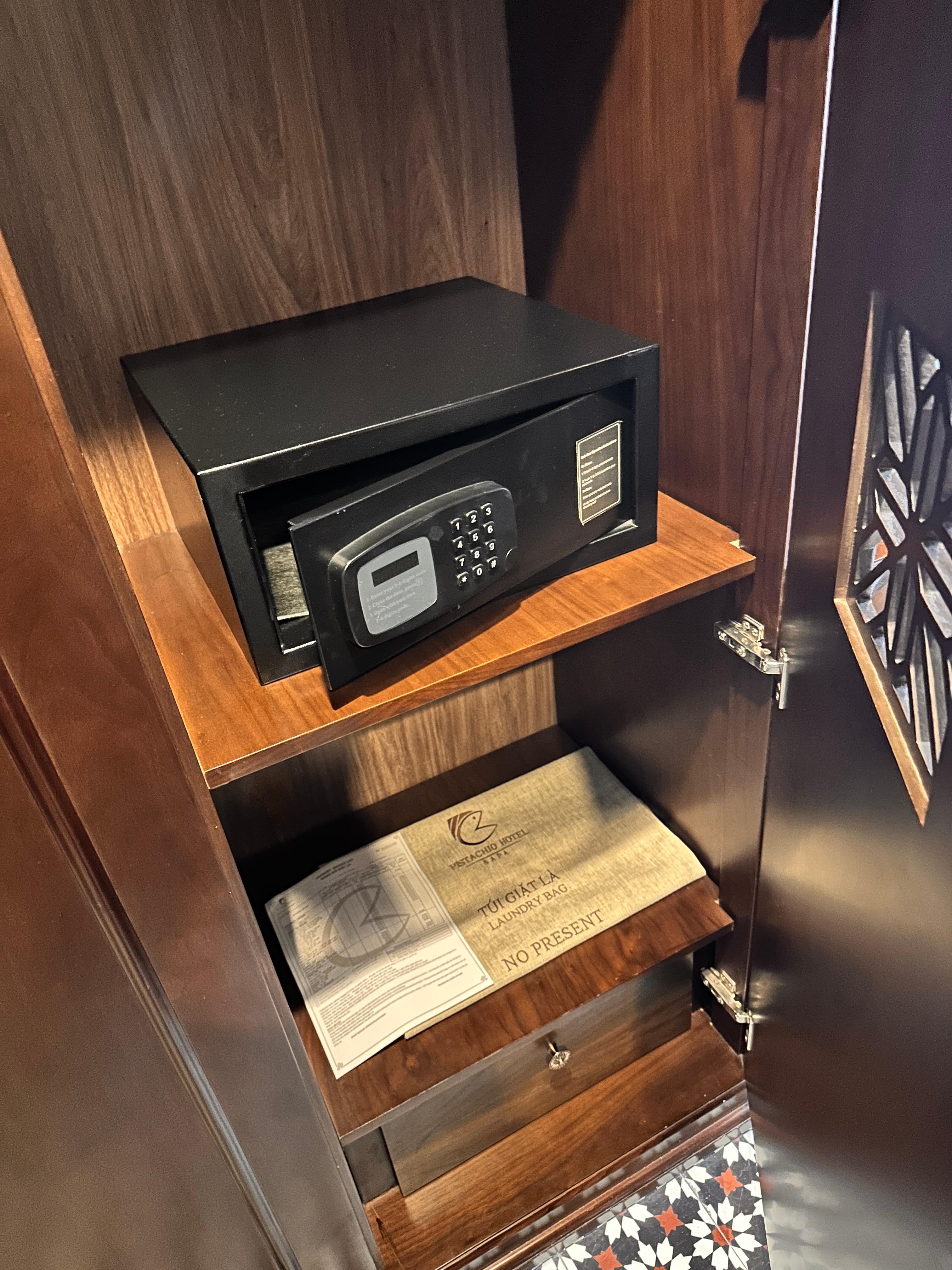 그 옆에는 짐과 케리어 둘 수 있게 큰 테이블이 있었고, 금고도 있고 슬리퍼도 있었습니다.