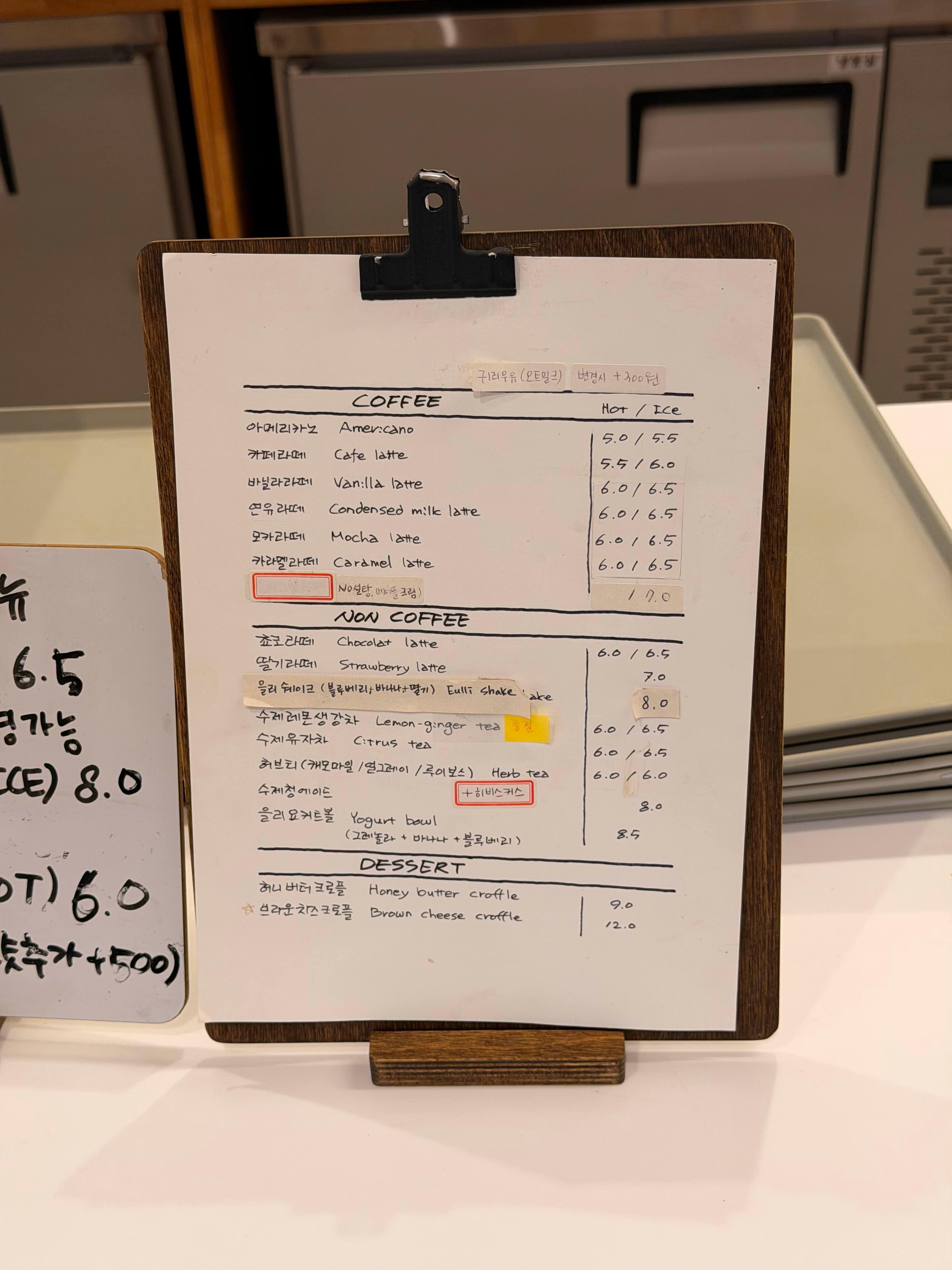 모두 배가 부른 관계로 음료만 주문했습니다. 당근치즈 머핀이랑, 허니버터 크로플이 아른아른!