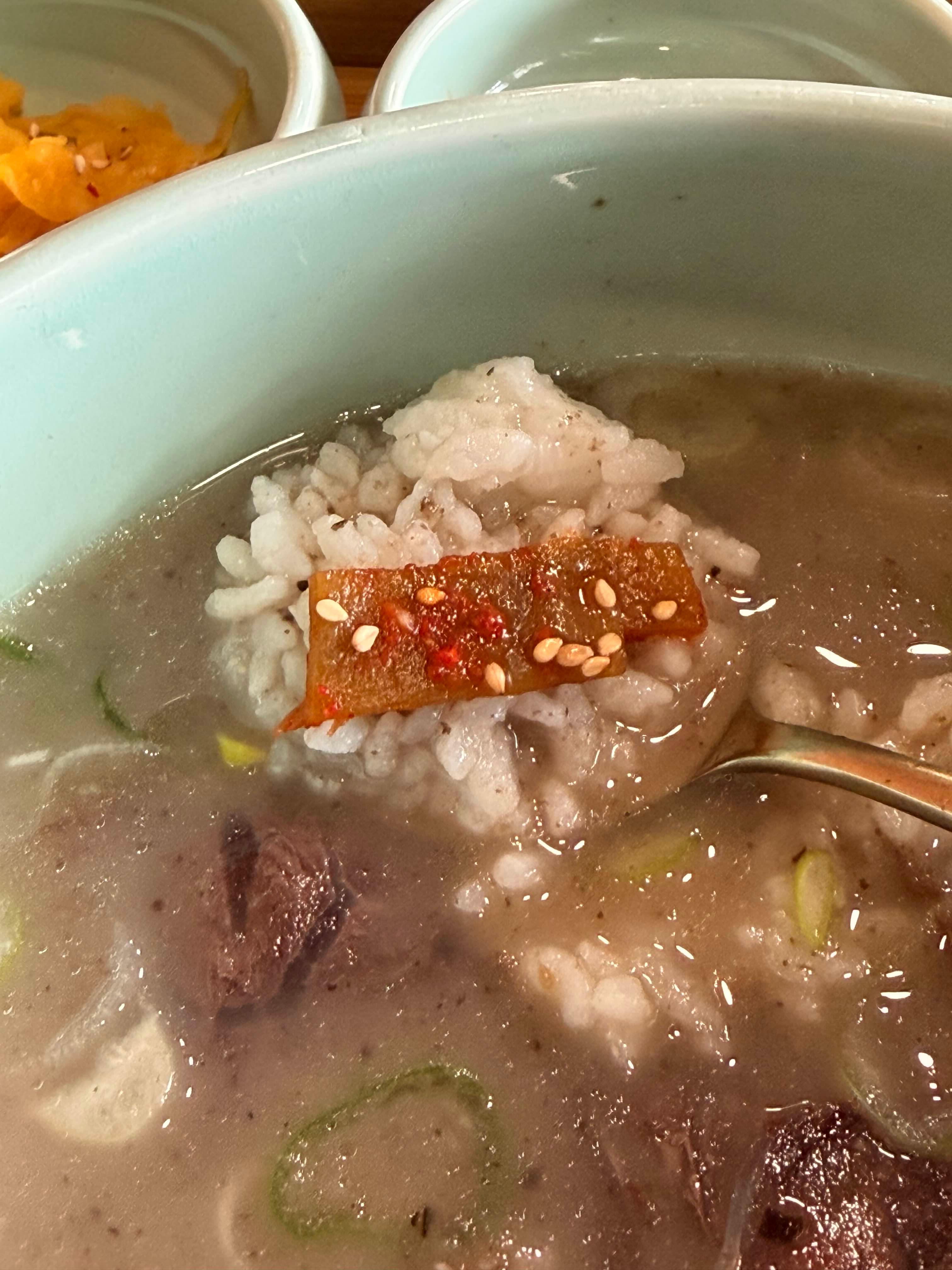 곰탕 양이 부족하다면, 국물과 토렴 한 밥을 리필해 준다고 한다.